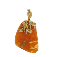 Zawieszka - surowy Bursztyn mleczny i srebro złocone