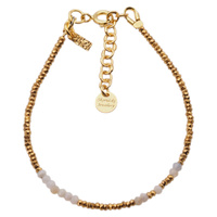 Bransoletka urodzeniowa kwiecień - opal różowy, złoty hematyt i srebro złocone