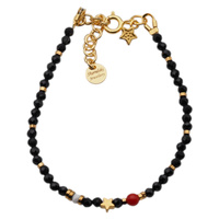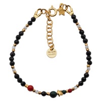 Bransoletka regulowana - Granat, Turmalin czarny, gwiazdki i srebro złocone (świąteczne)