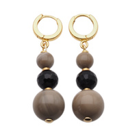 Kolczyki - Krzemień Pasiasty, Turmalin kulki w srebrze zloconym