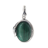 Zawieszka z owalnym malachitem w srebrze oksydowanym.