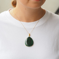 Zawieszka - malachit łza 41x35 mm w srebrze złoconym
