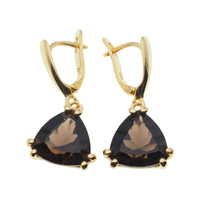 Kolczyki - Kwarc dymny trójkąt (szlif diamentowy) w srebrze złoconym