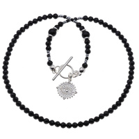 Naszyjnik- Turmalin czarny kulki, zawieszka oko proroka i srebro