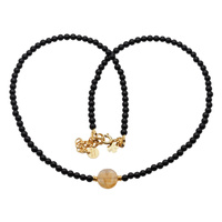 Naszyjnik różaniec - Turmalin, hematyt, Larimar i srebro złocone