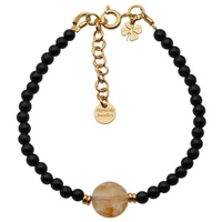 Bransoletka obfitości i ochrony - Cytryn, Turmalin czarny, koniczynka i srebro złocone