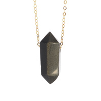 Naszyjnik - Obsydian złoty sopel na łańcuszku srebrnym złoconym