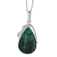 Zawieszka malachit łza w srebrze z liśćmi