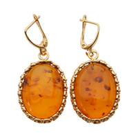 Kolczyki - koniakowy Bursztyn owal i srebro złocone