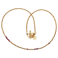 Naszyjnik urodzeniowy lipiec - rubin ,złoty hematyt i srebro złocone