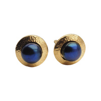 Klipsy - Perły czarne koło 8 mm w złoconym srebrze młotkowanym