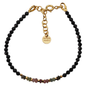 Bransoletka - Turmalin kolorowy, Hematyt złoty i srebro złocone