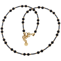 Naszyjnik regulowany - Turmalin czarny, Hematyt i srebro złocone