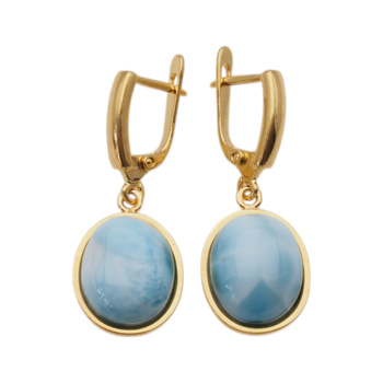 Kolczyki - Larimar owalny w srebrze złoconym