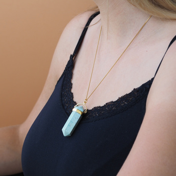 Naszyjnik - Turkus sopel w okuciu na łańcuszku złoconym