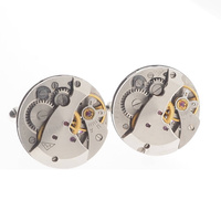 Spinki do mankietów z okrągłym mechanizmem zegarka w srebrze.