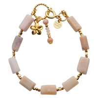Bransoletka z kwiatem - Opal Różowy i srebro złocone