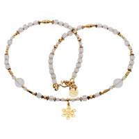 Bransoletka regulowana - Turmalin, Koral, Howlit, gwiazdki i srebro złocone (świąteczne)