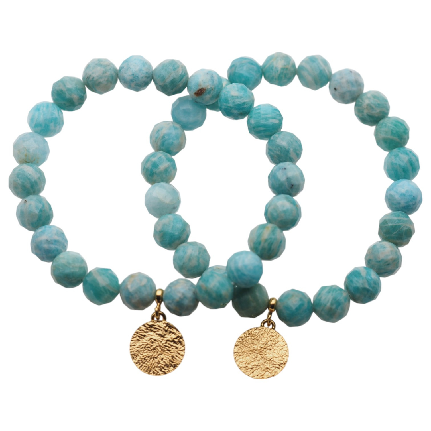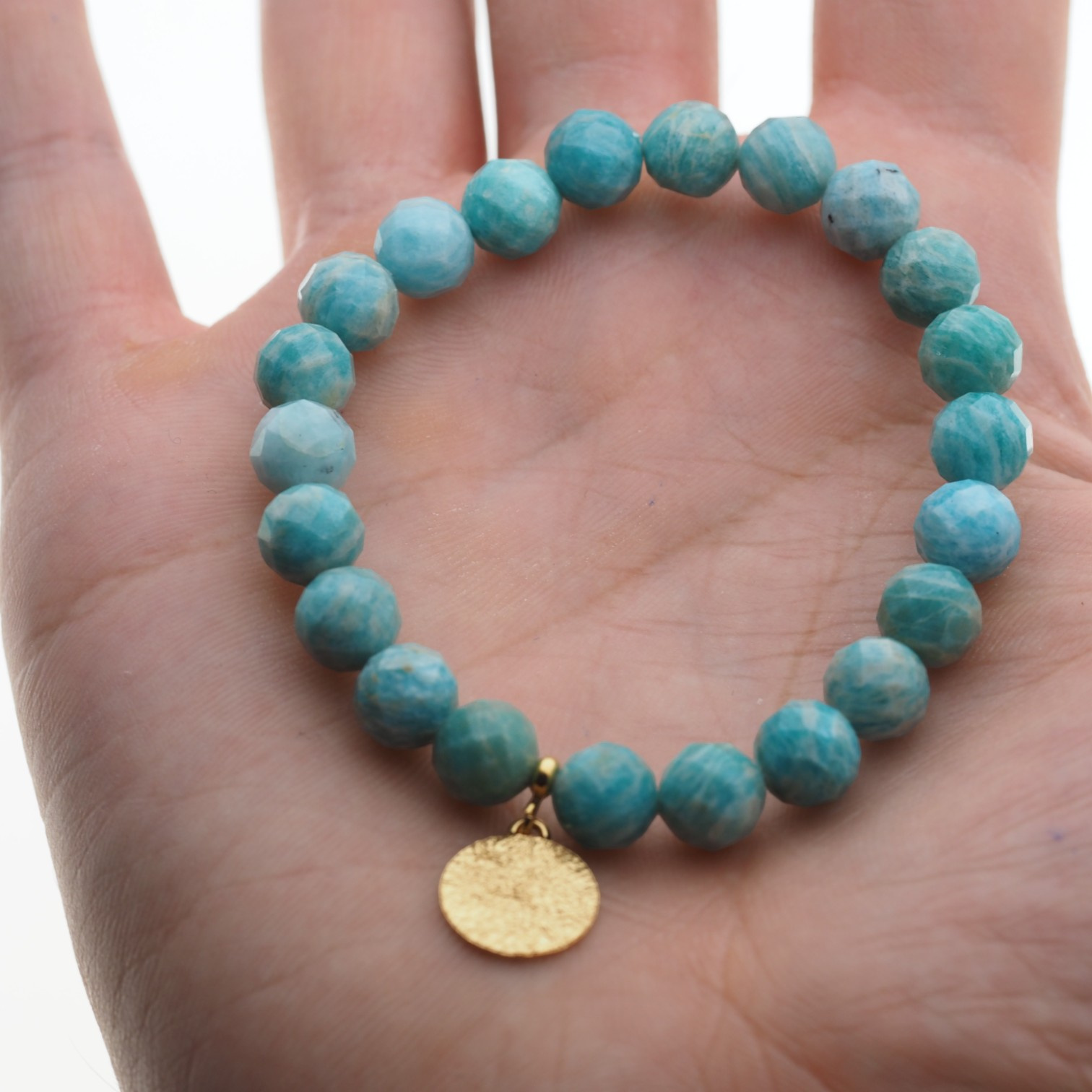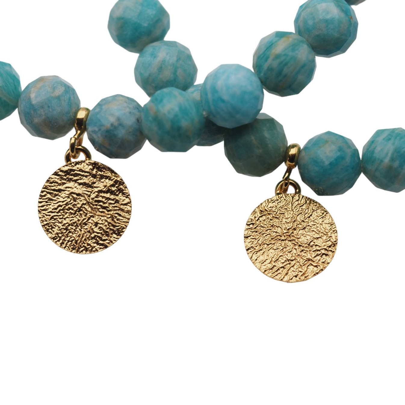 Bransoletka 18,5 cm - Amazonit fasetowany kulki i srebro złocone
