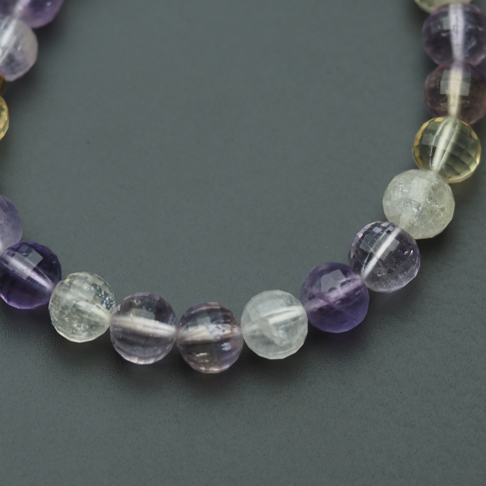 Bransoletka 18,5 cm - cięty Ametryn kulki 7mm i srebro złocone