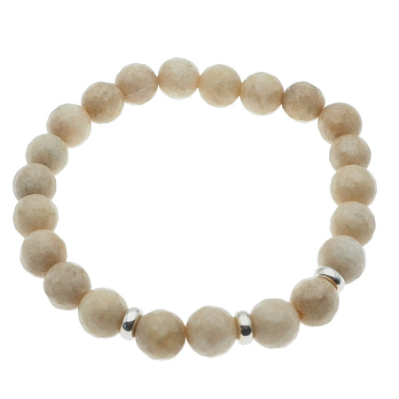 Kamienie zostały nawleczone na trwałą, elastyczną gumkę silikonową, co zapewnia komfort noszenia oraz łatwe zakładanie bransoletki. Całość uzupełniają subtelne przekładki wykonane ze srebra próby 925, które dodają biżuterii eleganckiego akcentu i podkreślają naturalny charakter kamieni.
