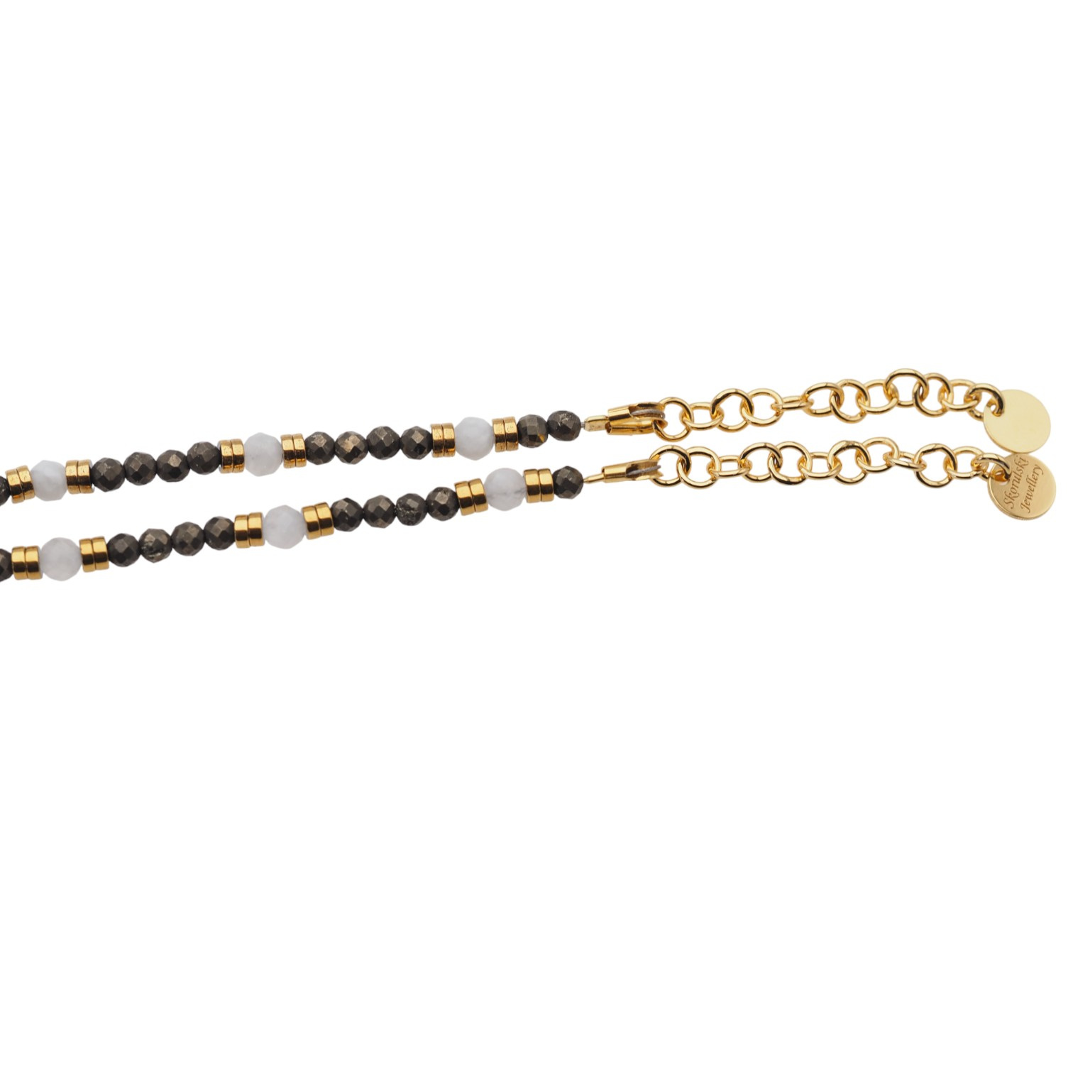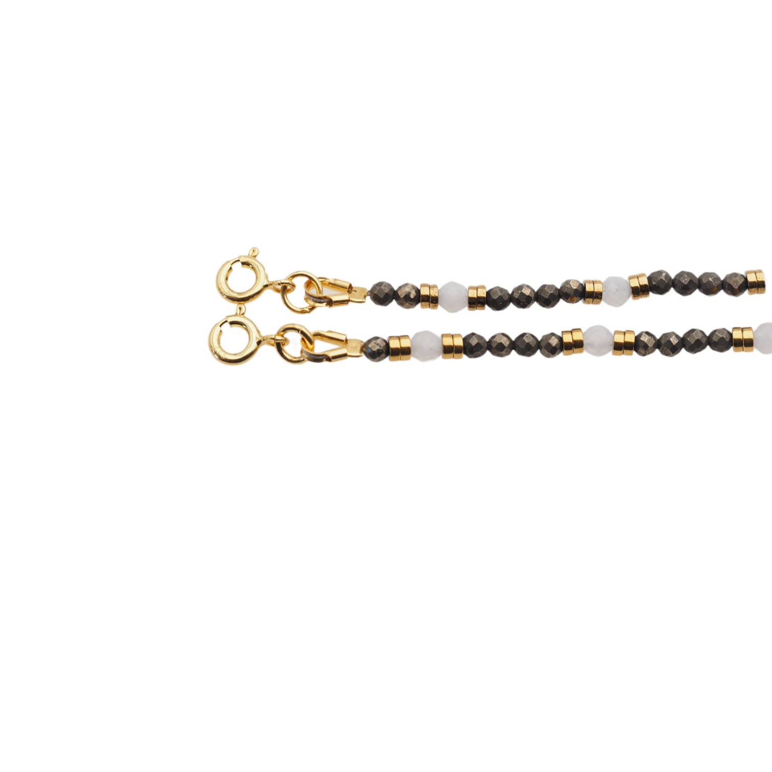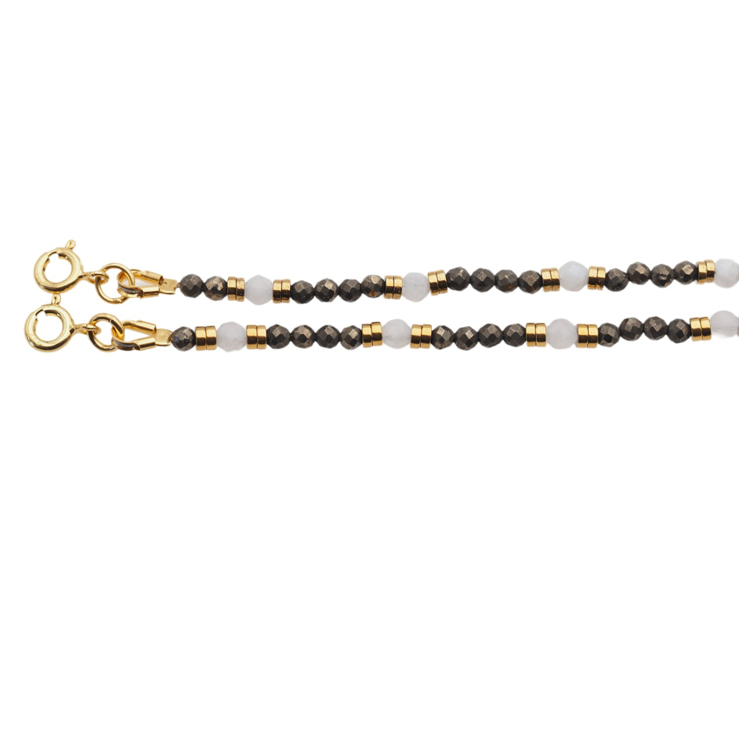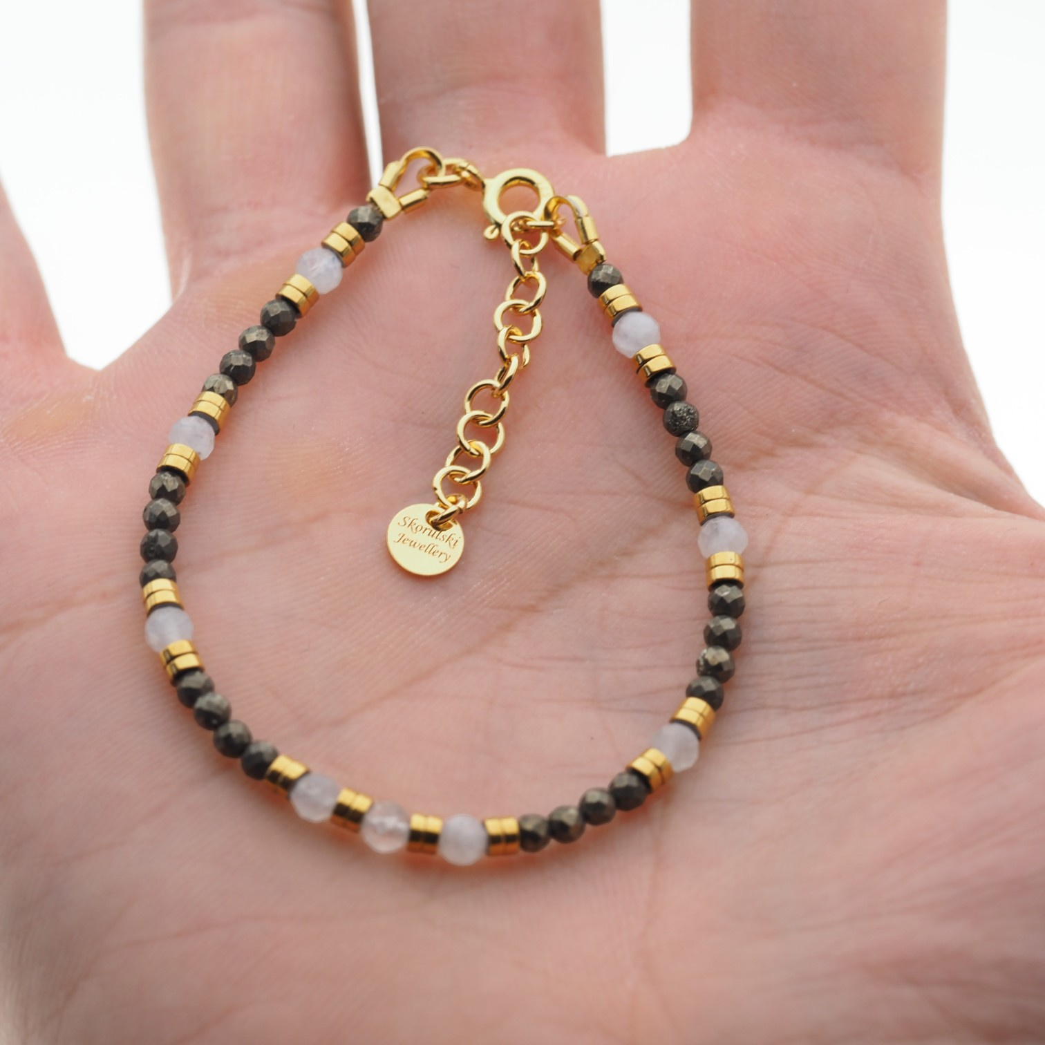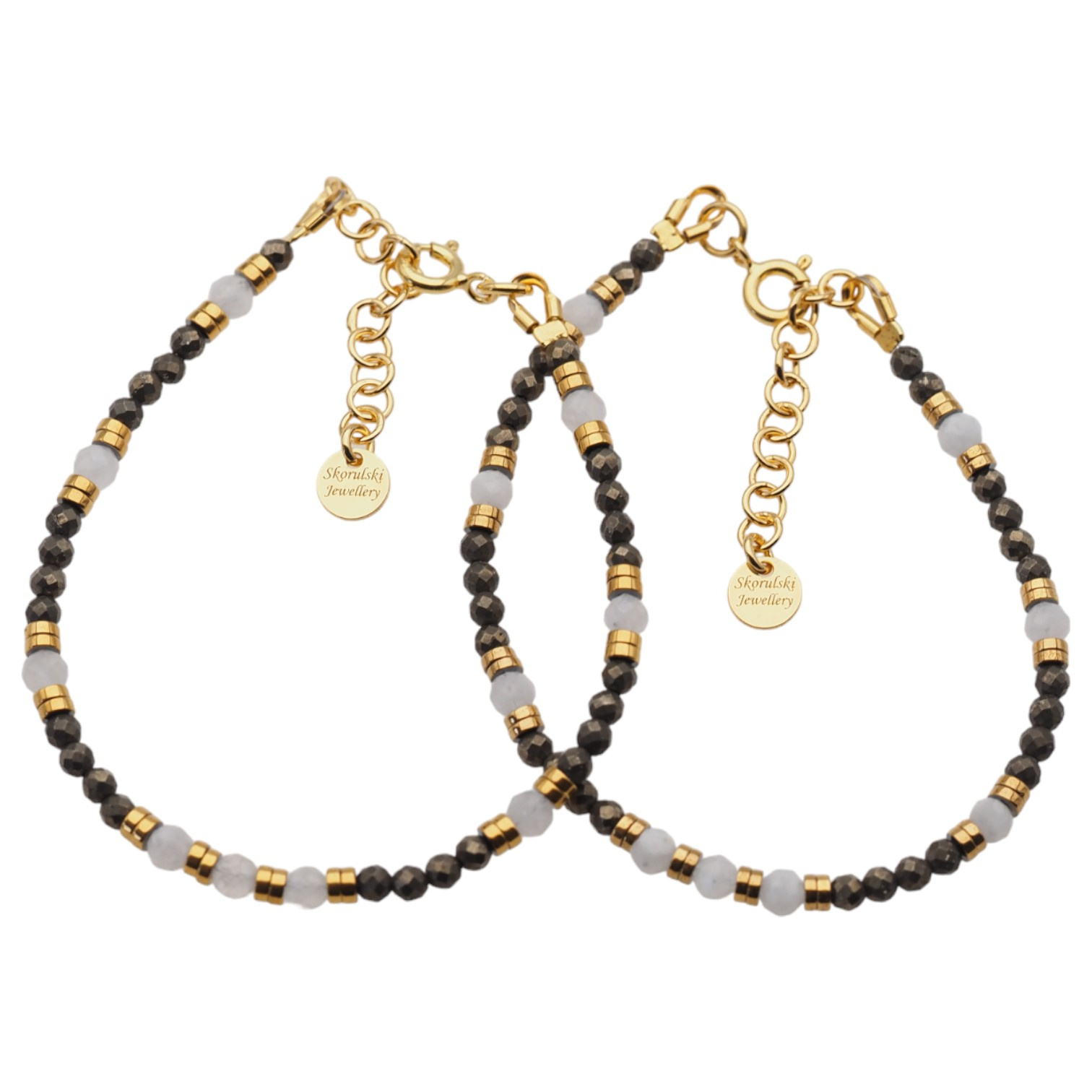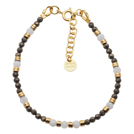 Bransoletka - Kamień Księżycowy, Piryt, Hematyt i srebro złocone