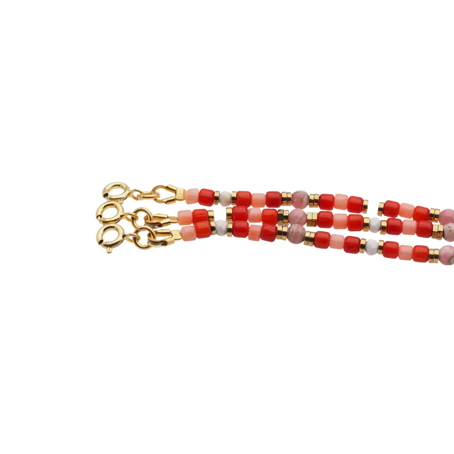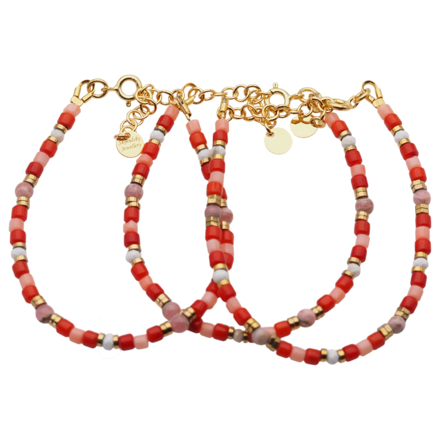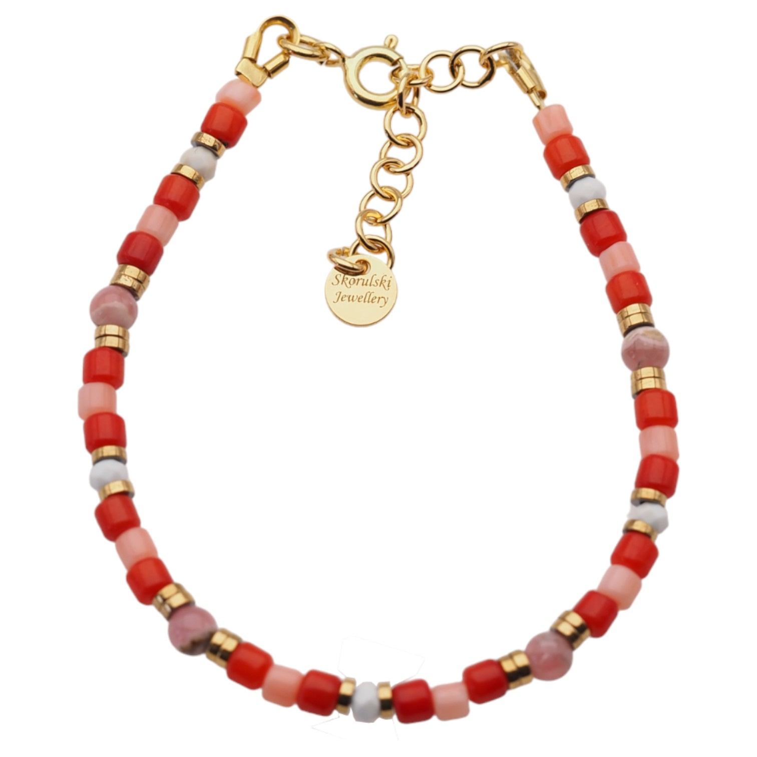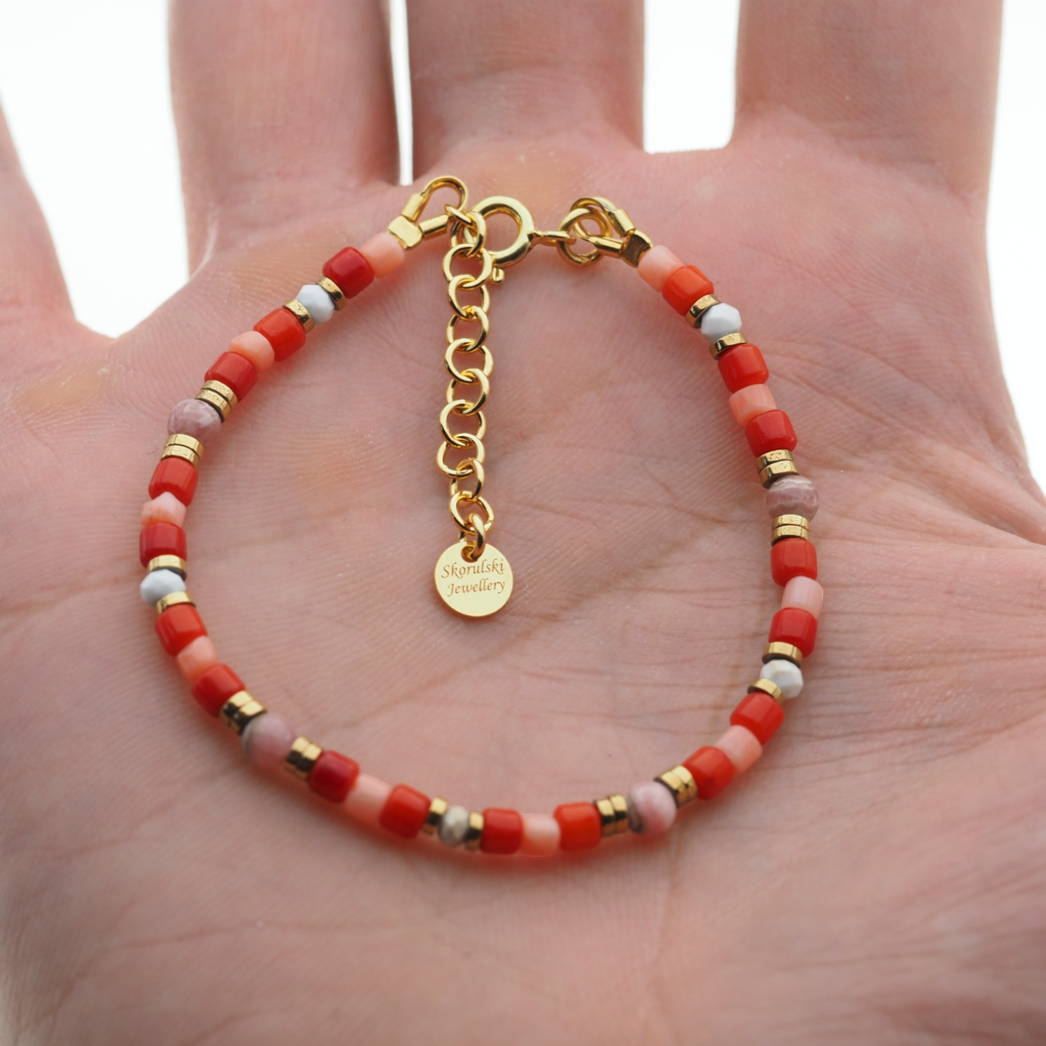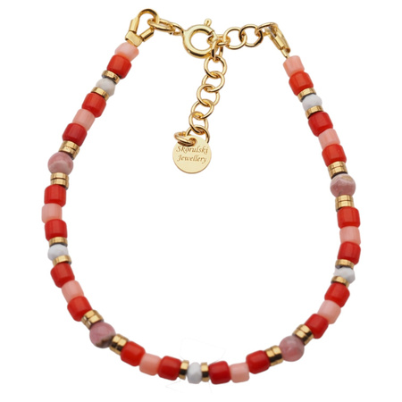 Bransoletka - Koral, Rodochrozyt, Howlit, Hematyt i srebro złocone