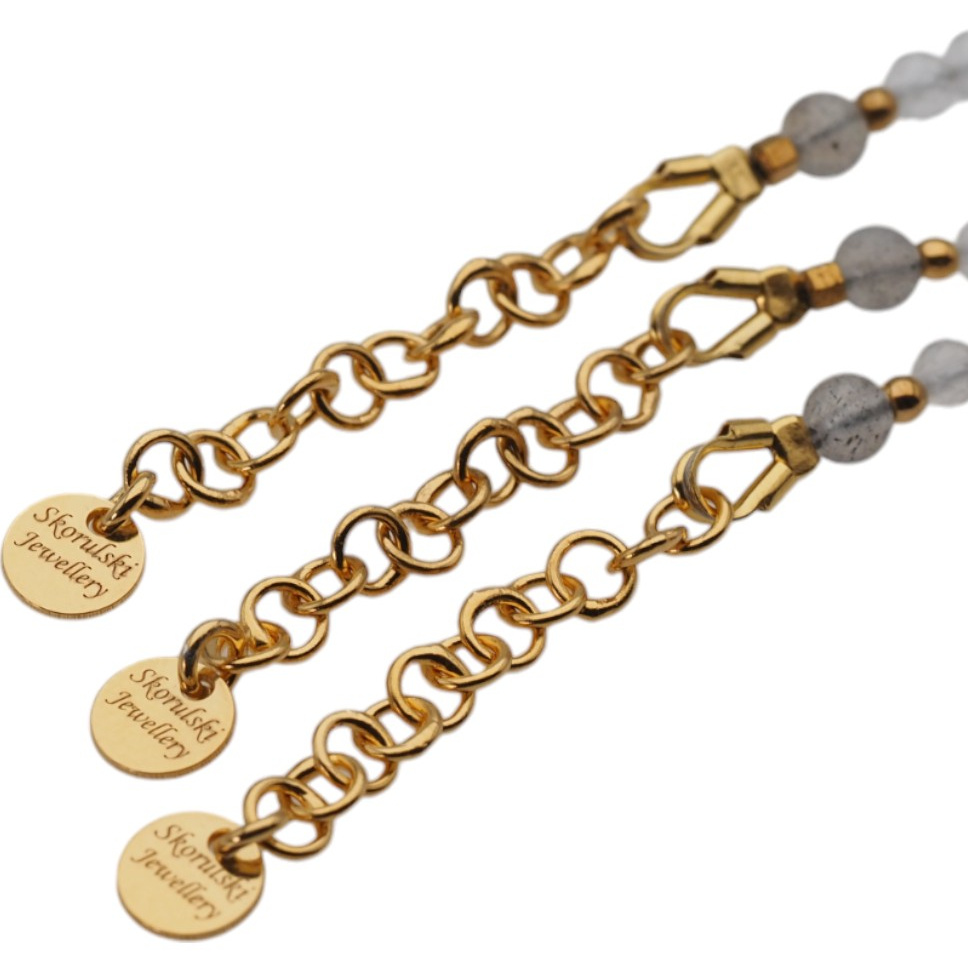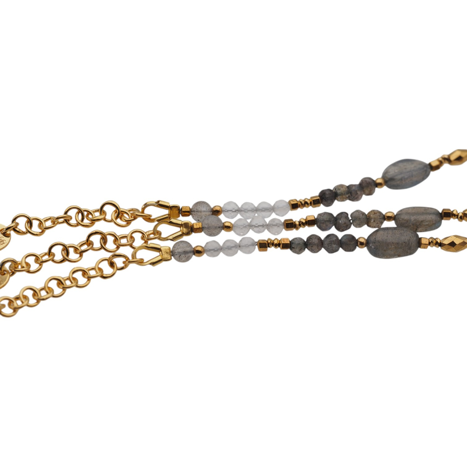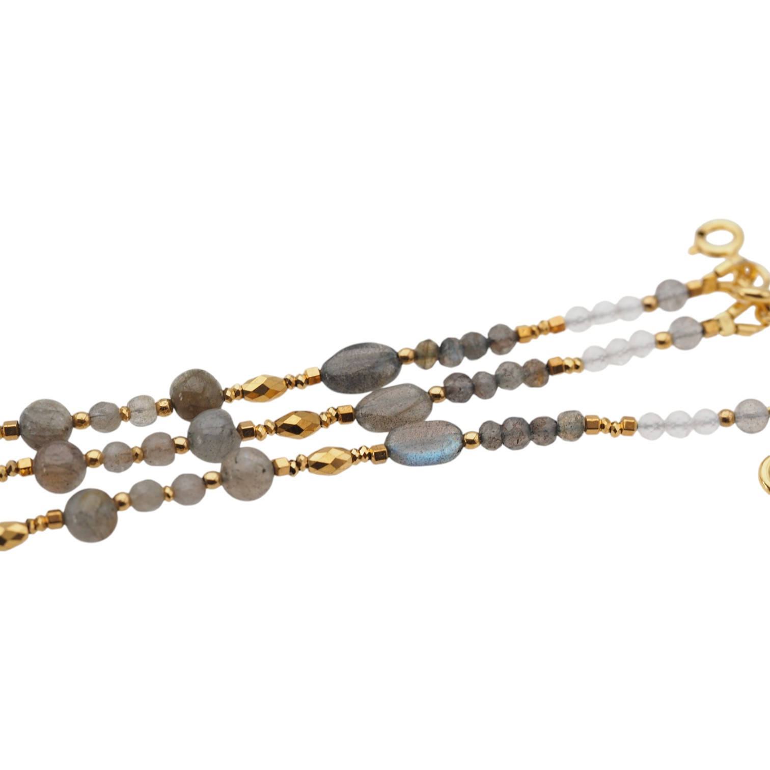Bransoletka - Labradoryt, kryształ górski hematyt i srebro złocone