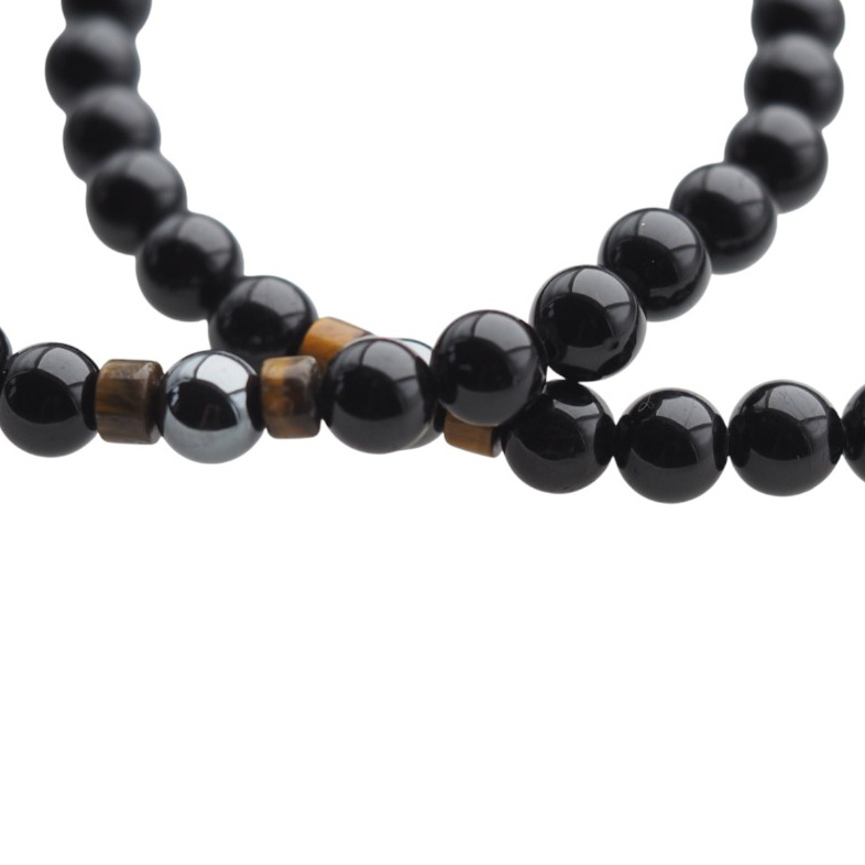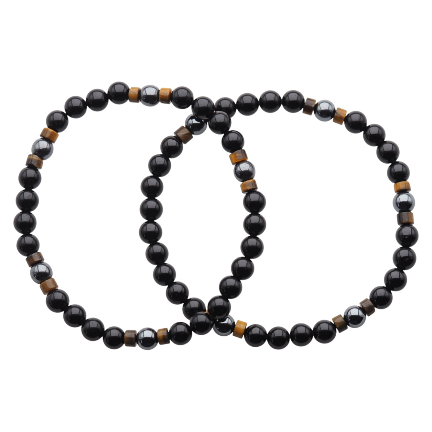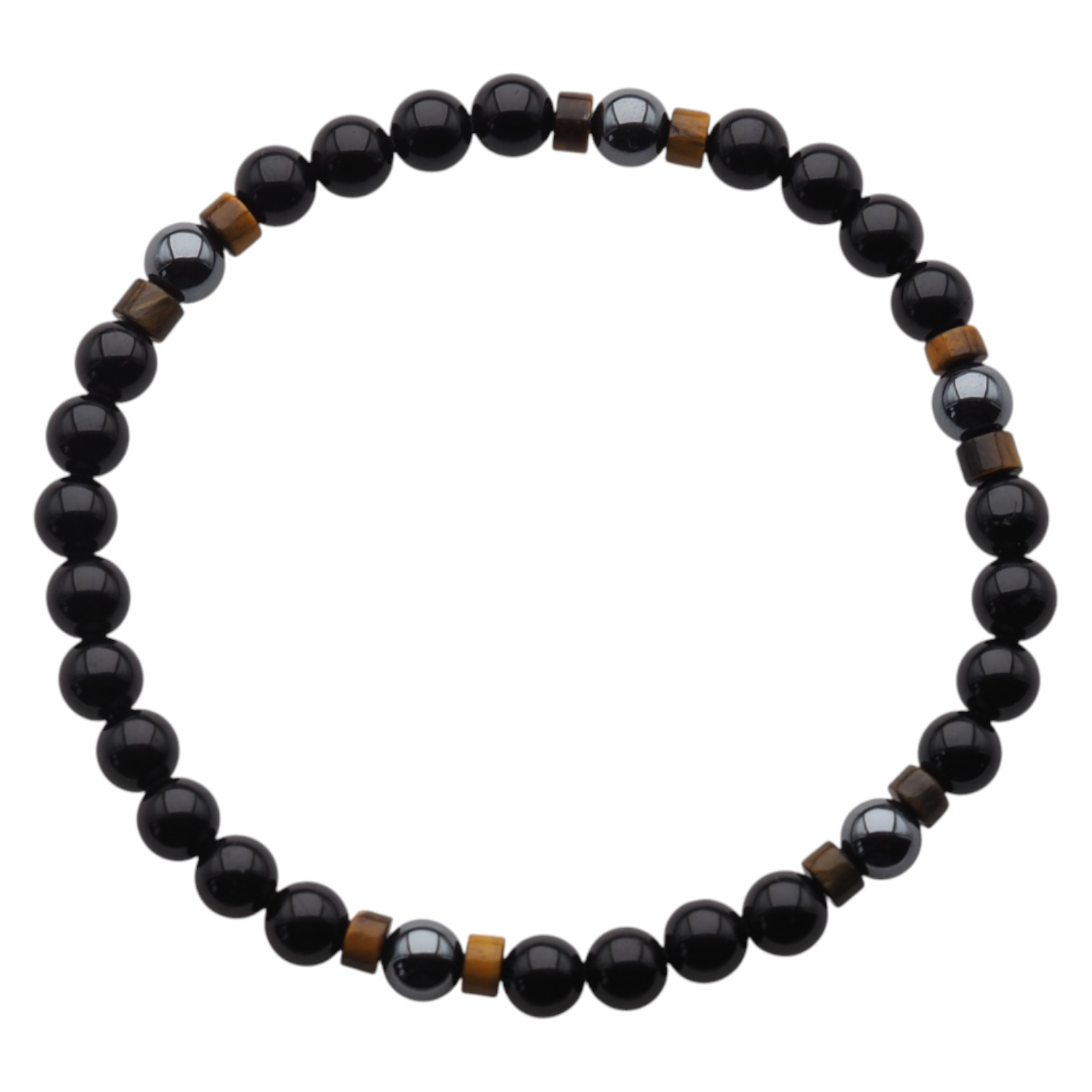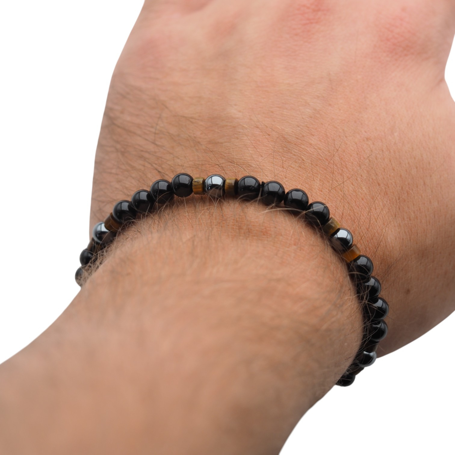 Bransoletka męska na gumce - czarny Turmalin, Tygrysie Oko i Hematyt