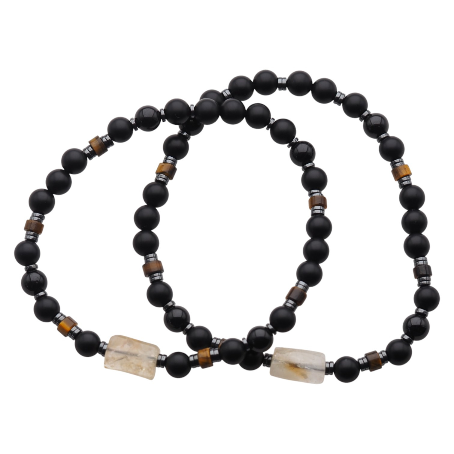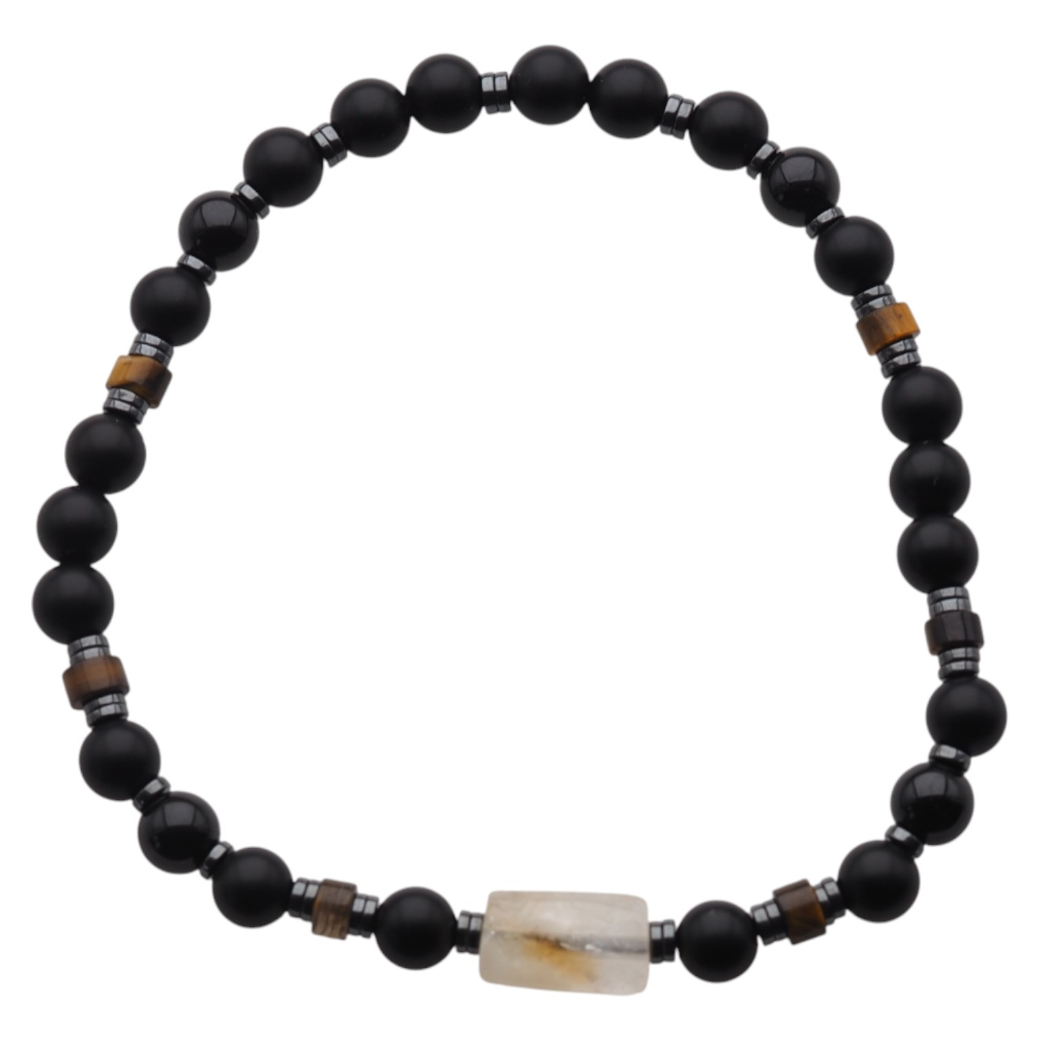 Bransoletka męska na gumce - onyks, turmalin czarny, tygrysie oko, cytryn