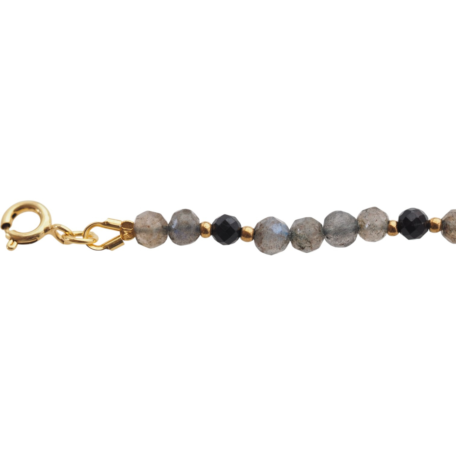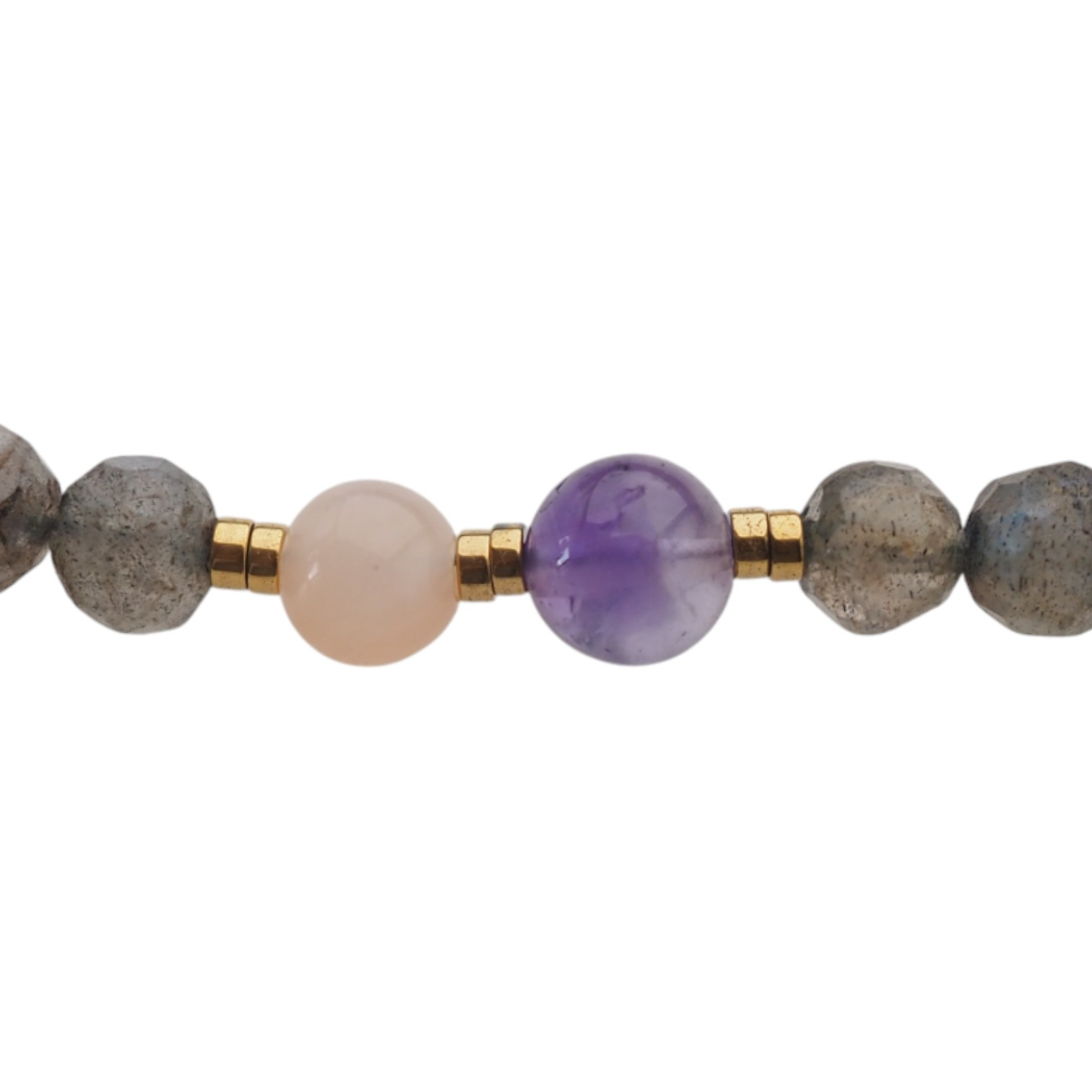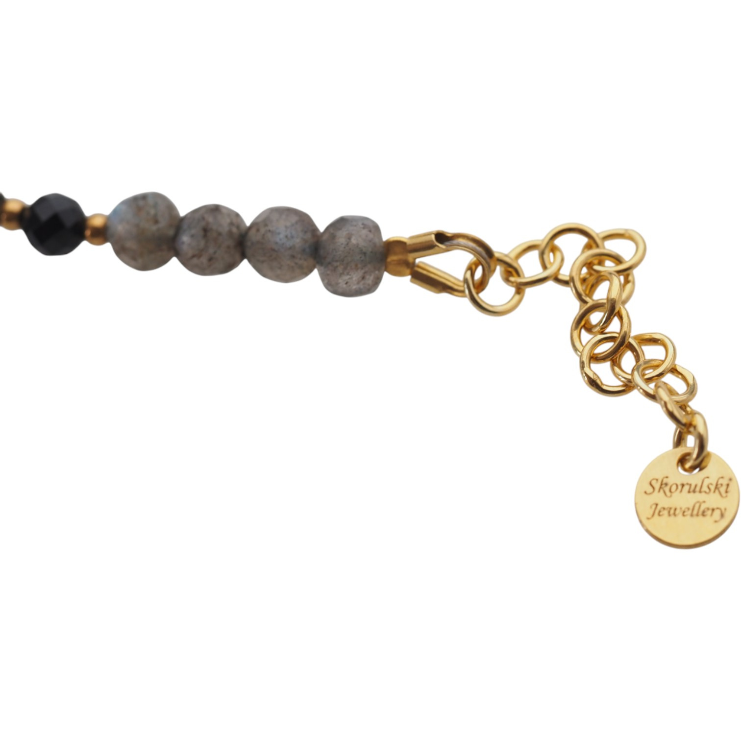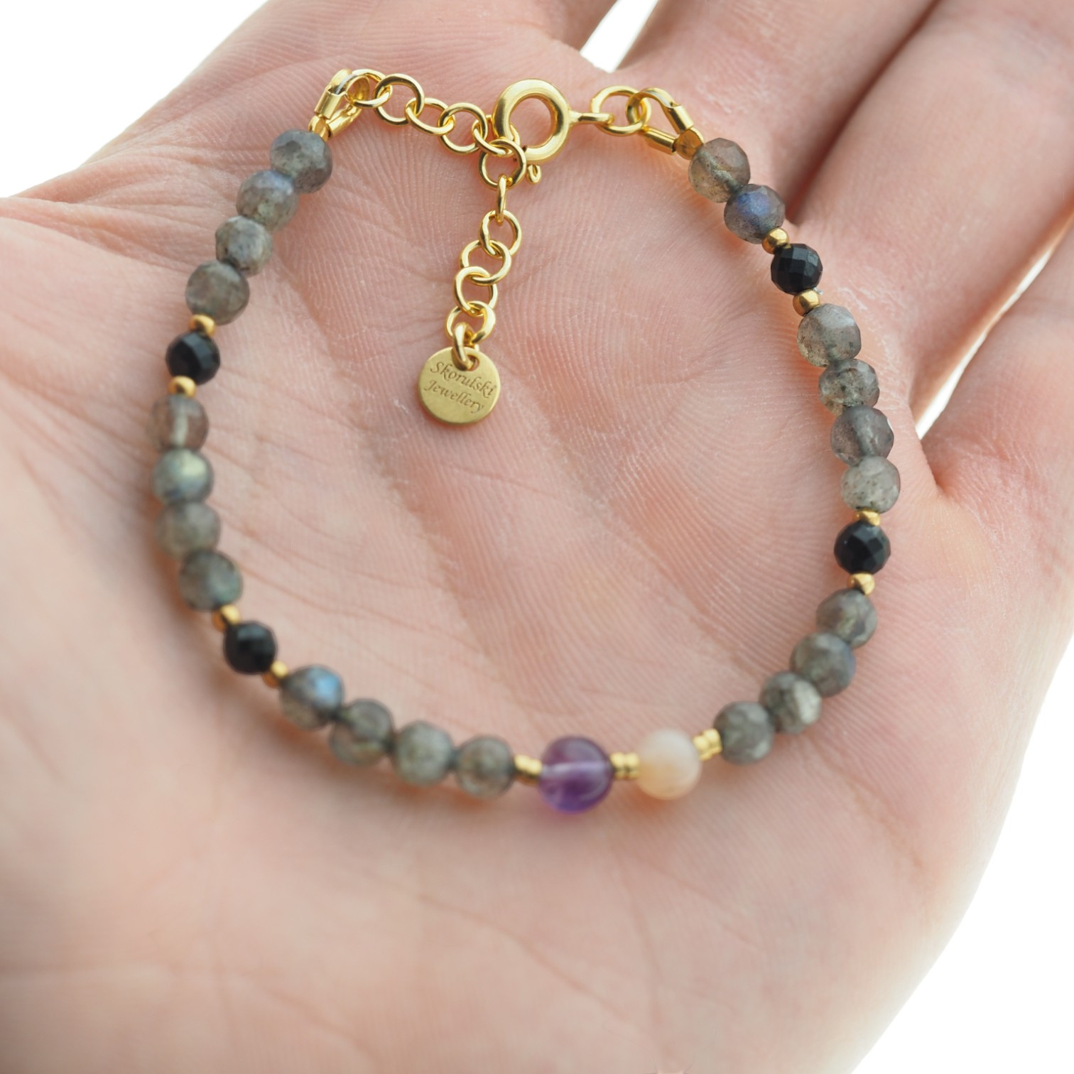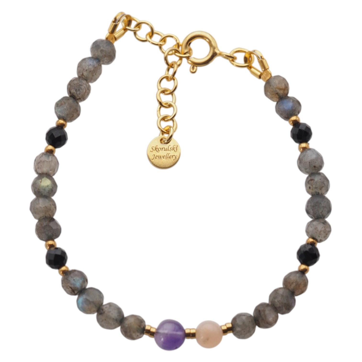 Bransoletka mix - Turmalin, ametyst, kwarc różowy, labradoryt i srebro złocone