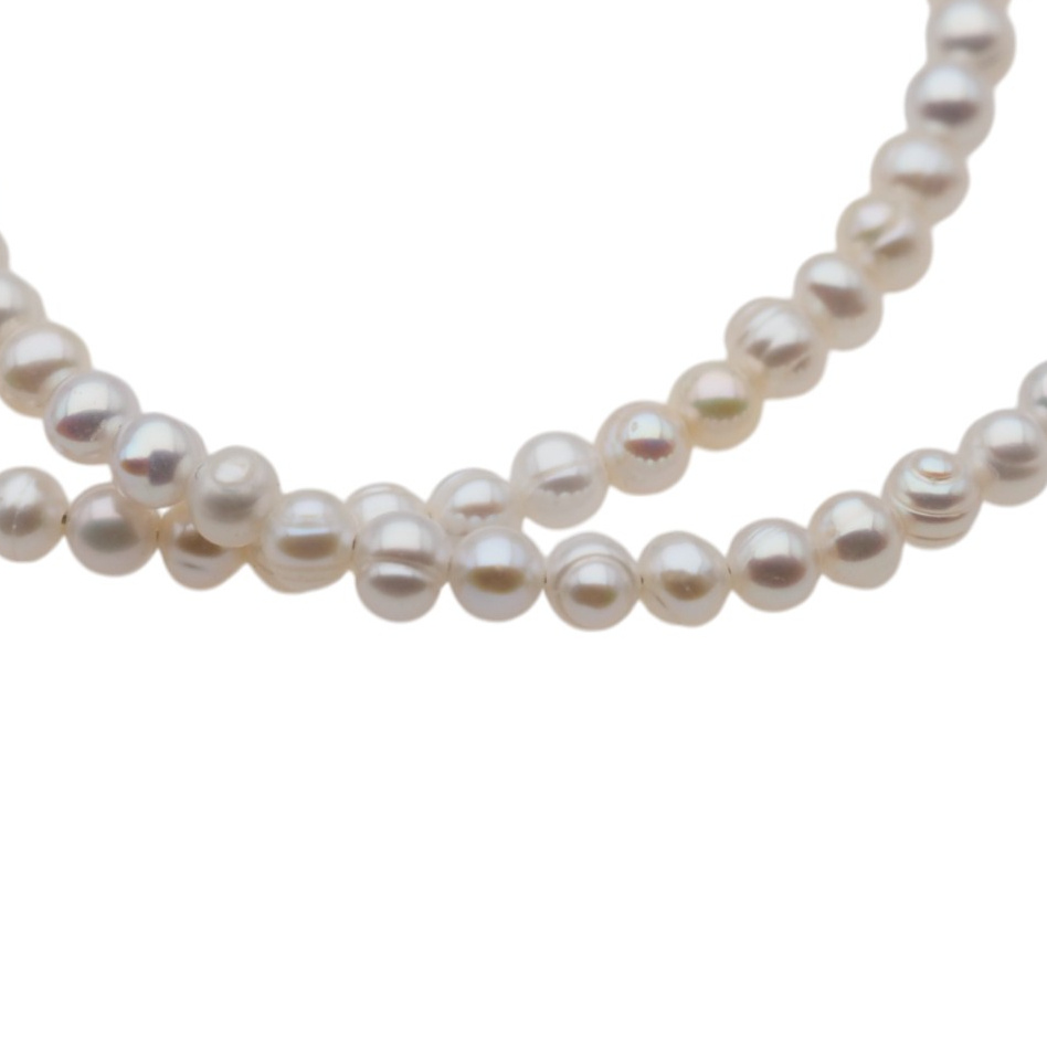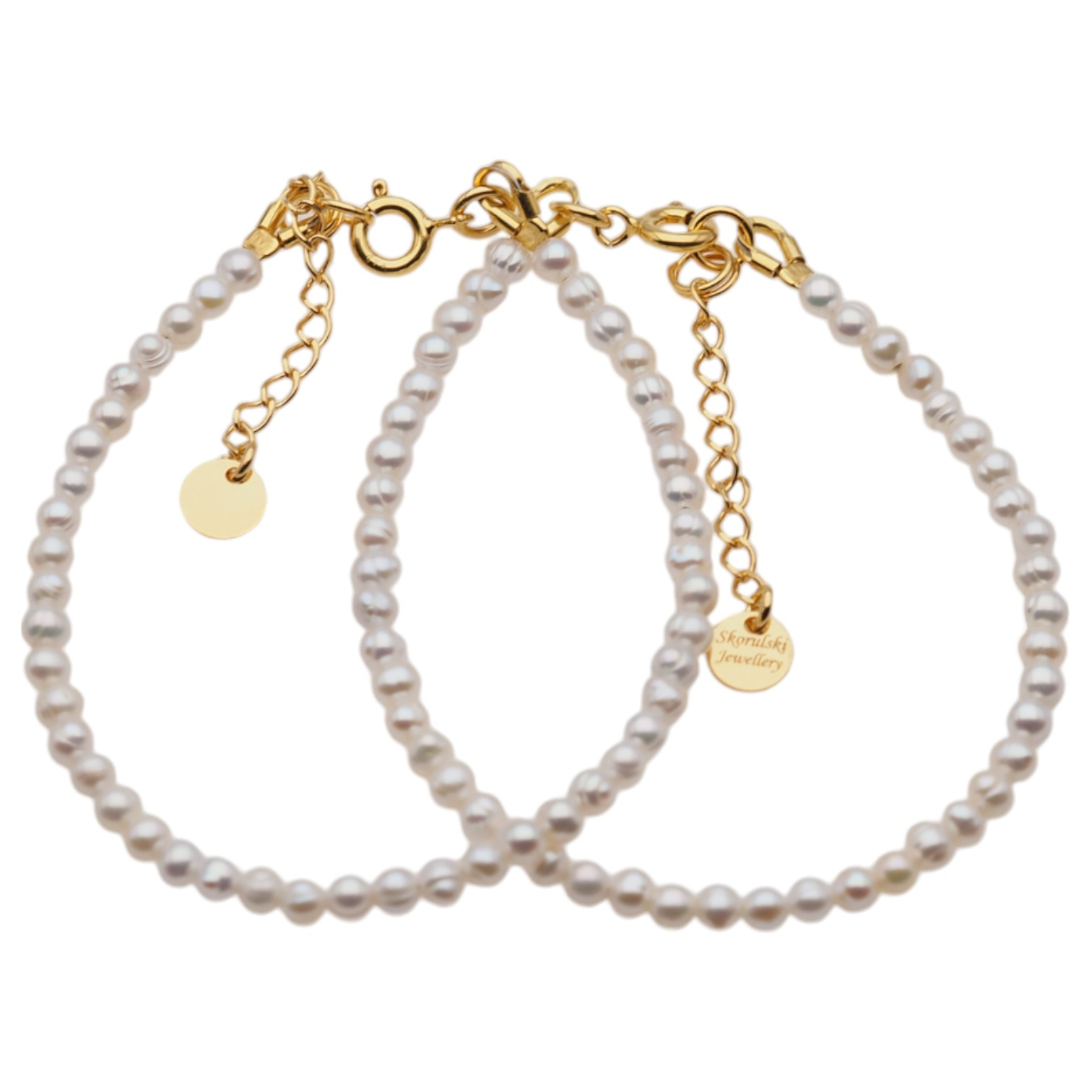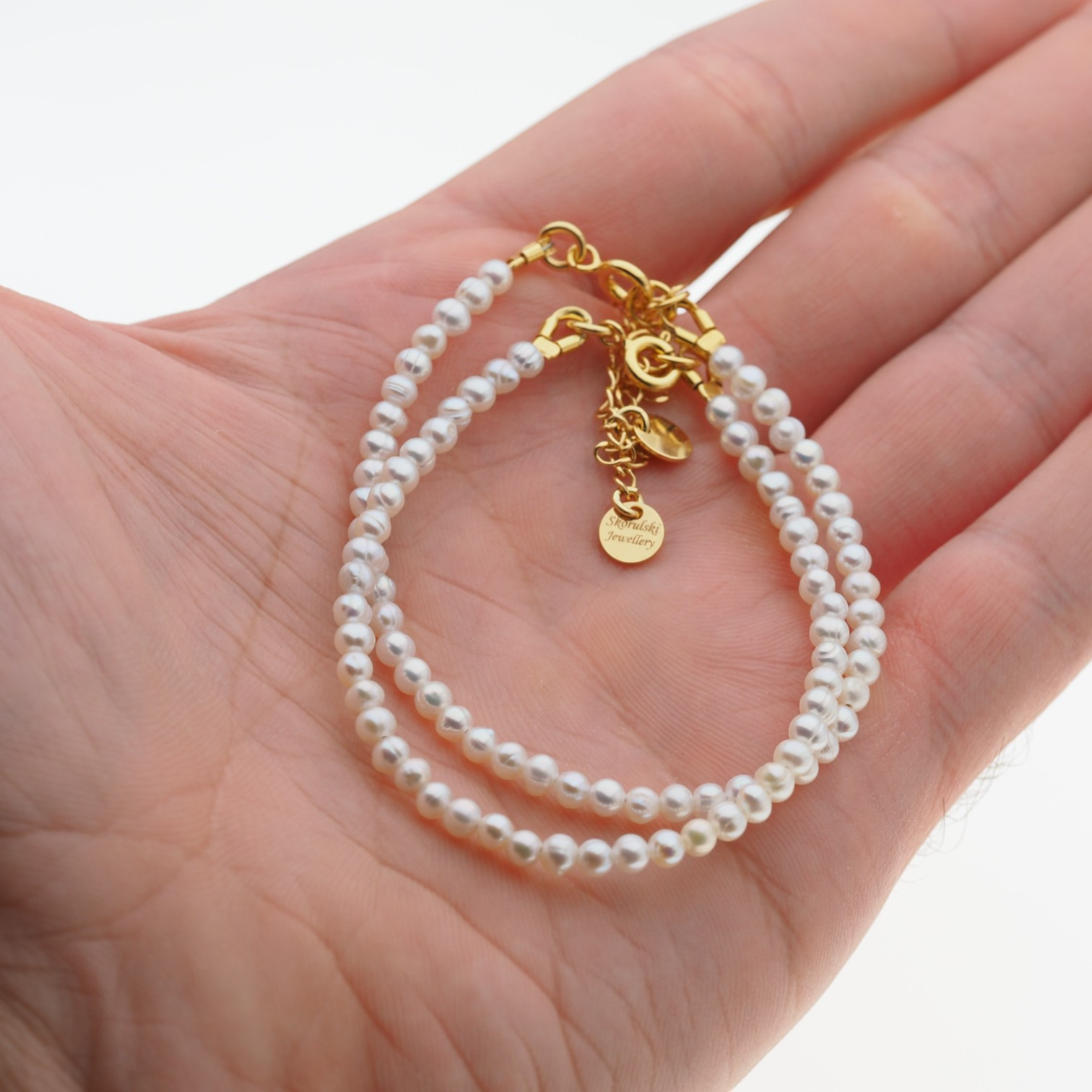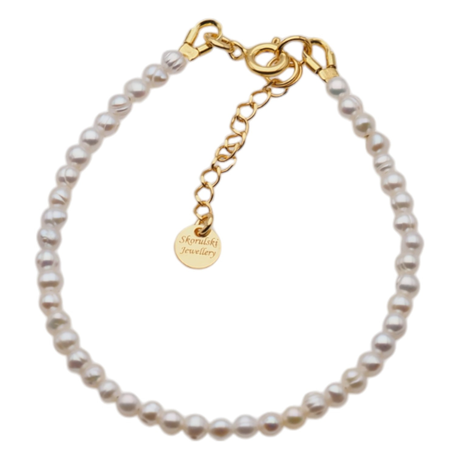 Bransoletka z białymi, naturalnymi Perłami słodkowodnymi, hodowanymi została wykonana ręcznie na lince stalowej.