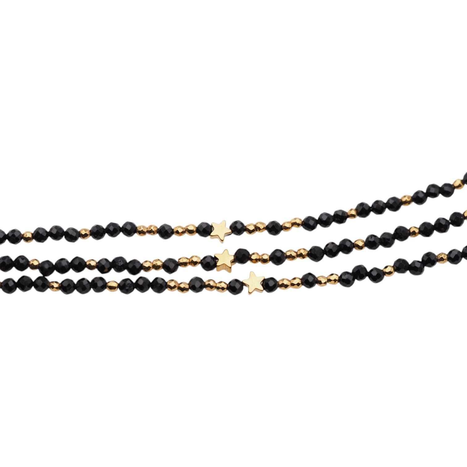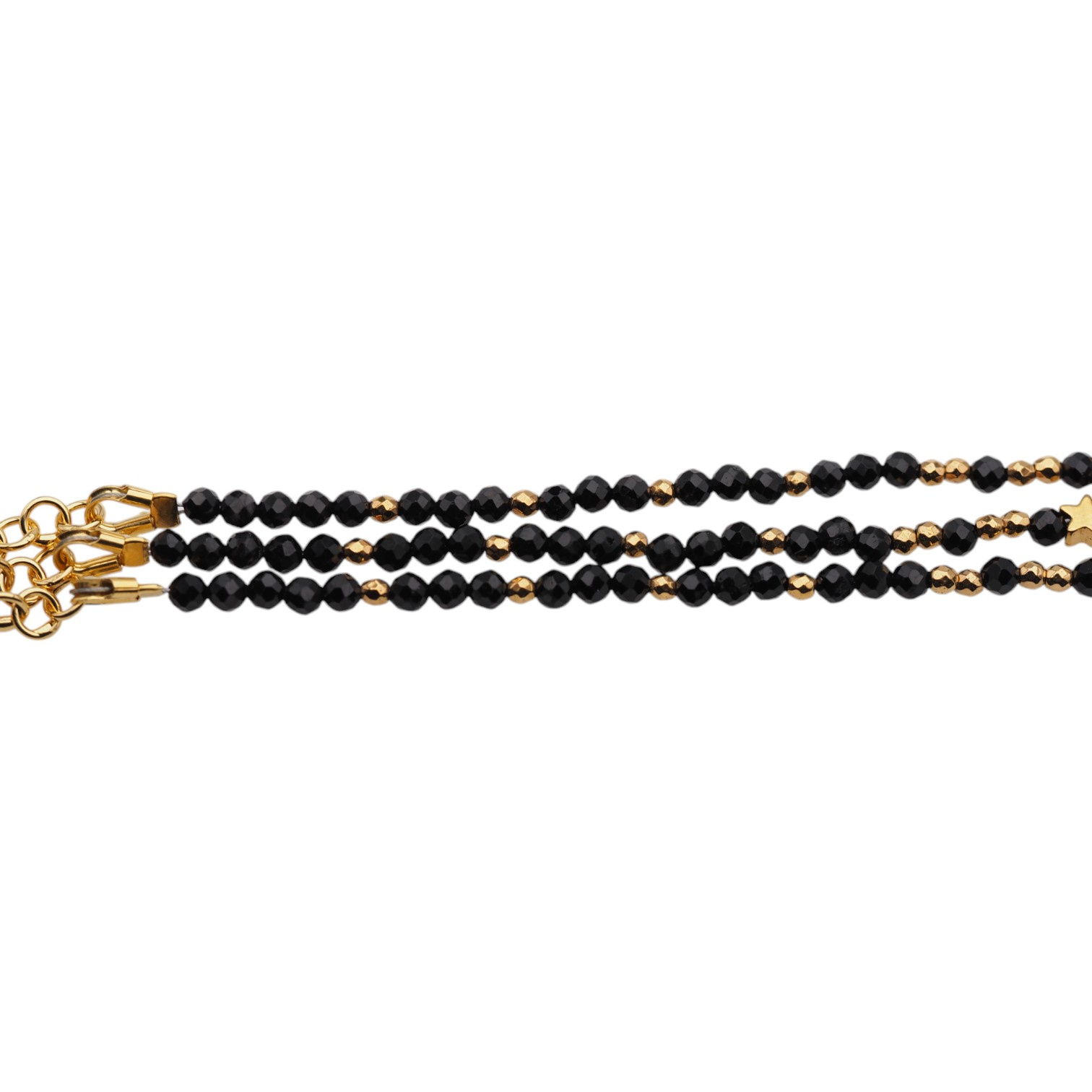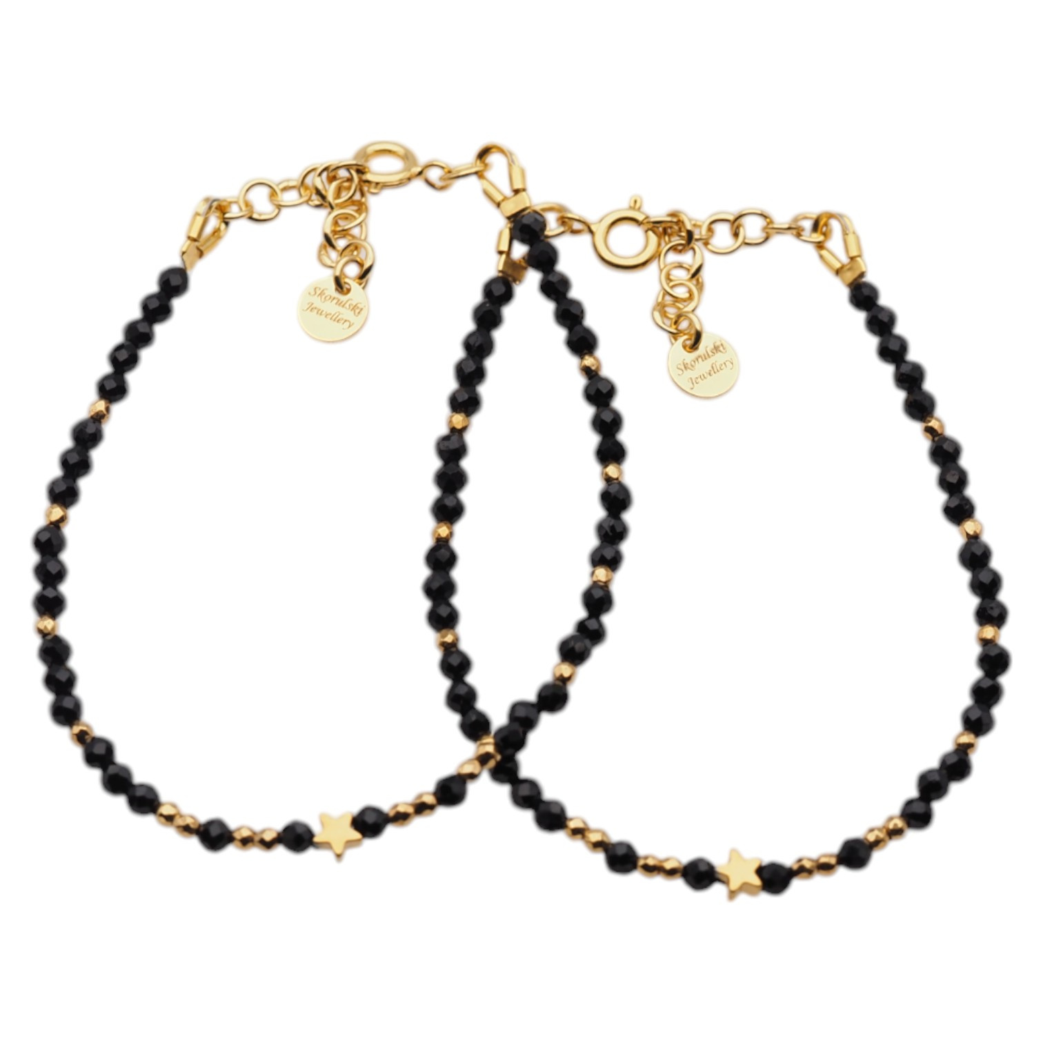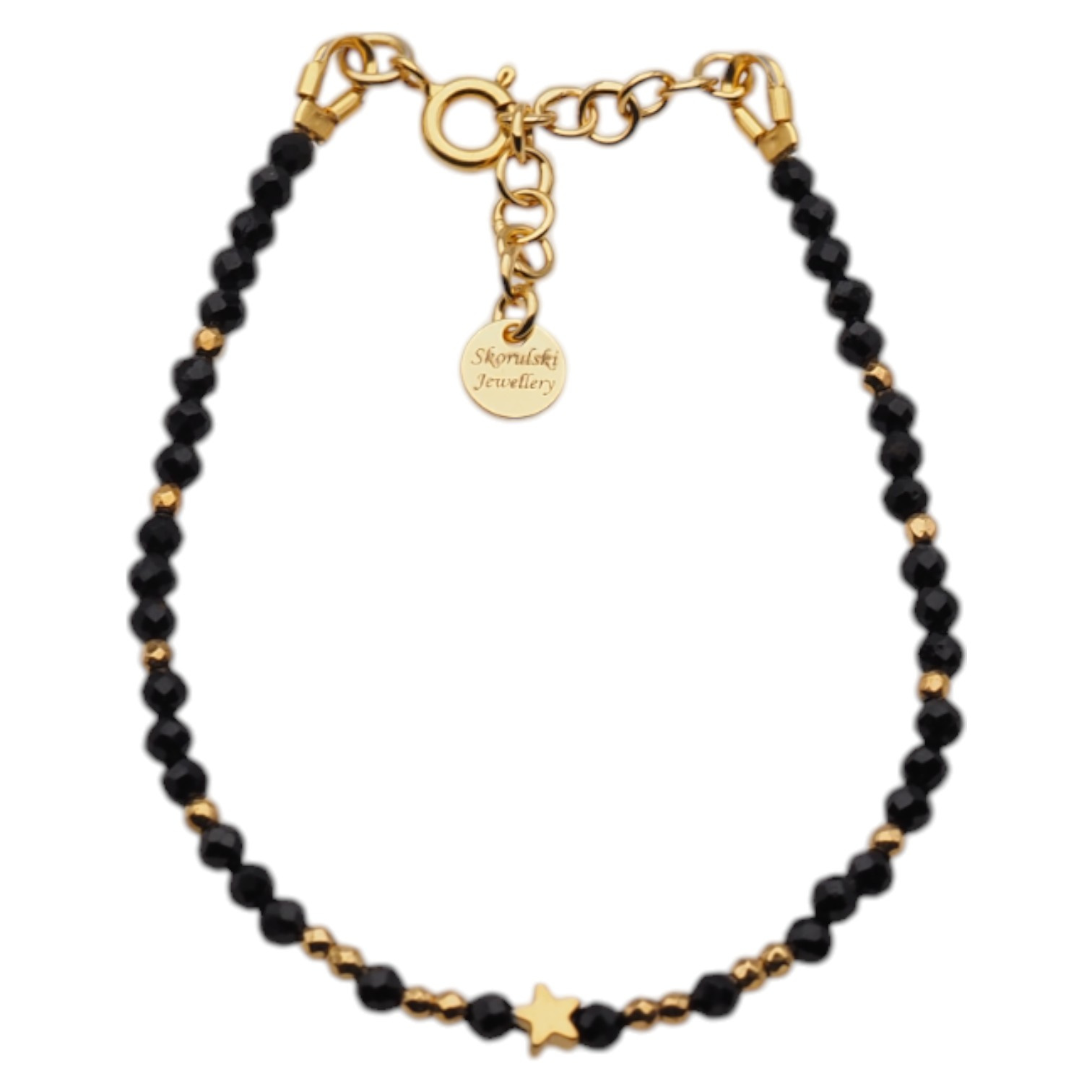 Bransoletka regulowana - Turmalin czarny, gwiazdki i srebro złocone (świąteczne)