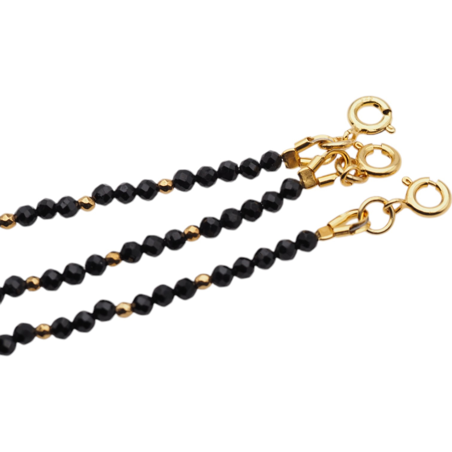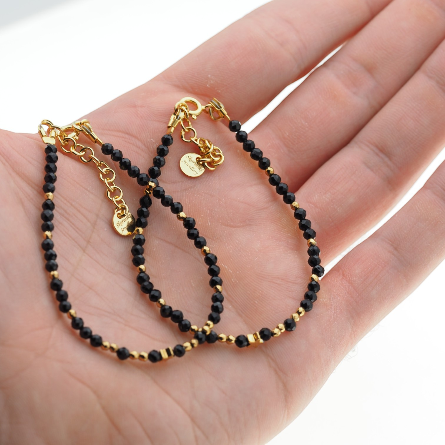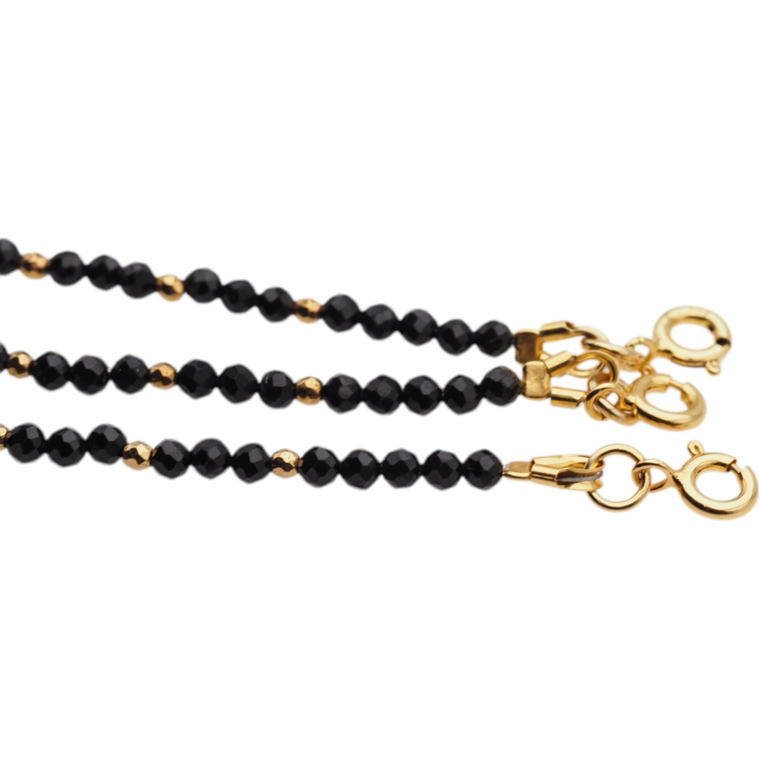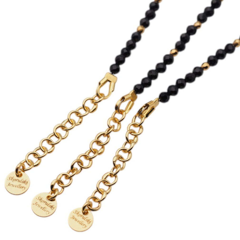 Bransoletka regulowana - Turmalin czarny, gwiazdki i srebro złocone (świąteczne)