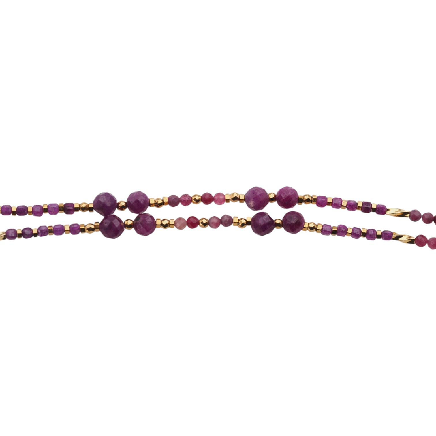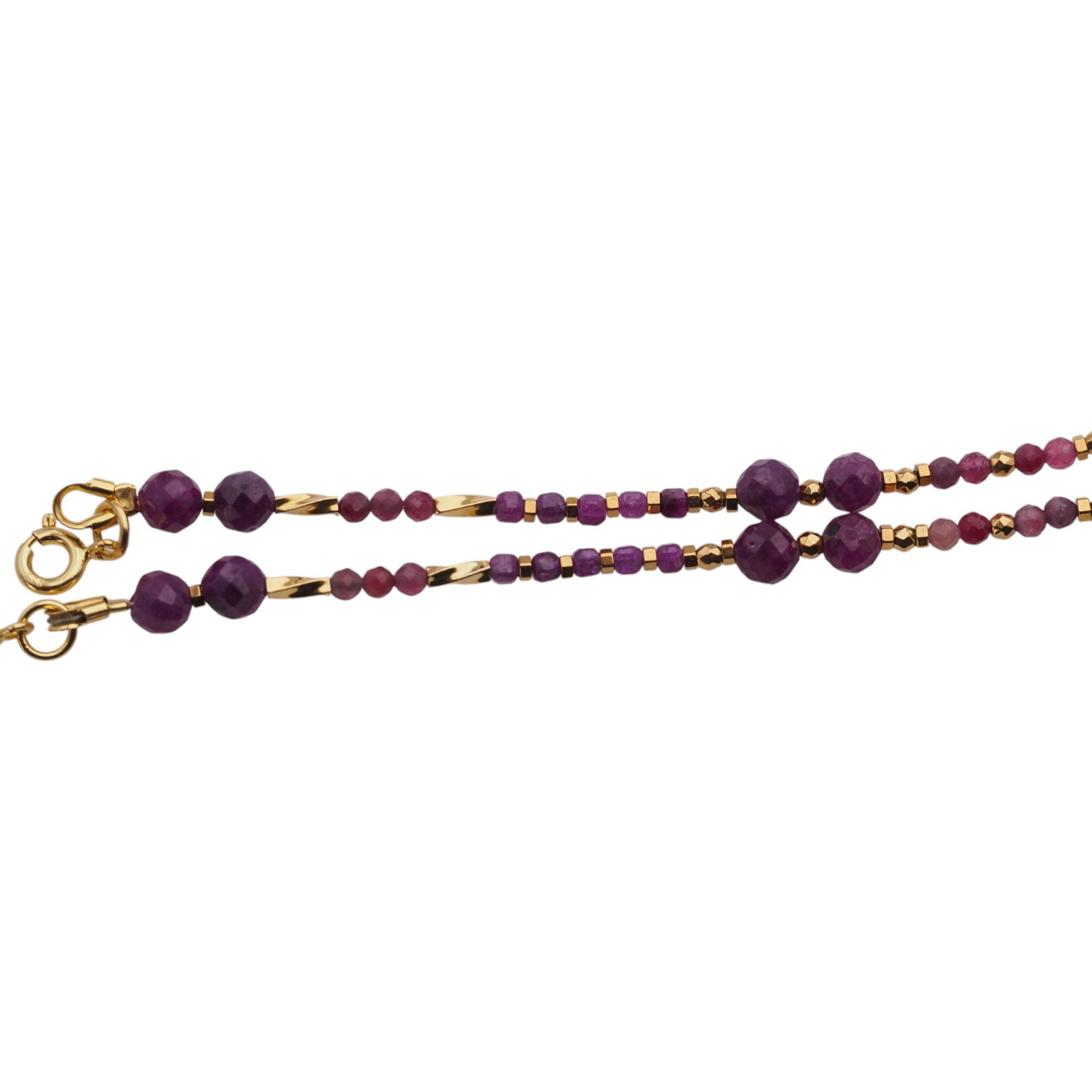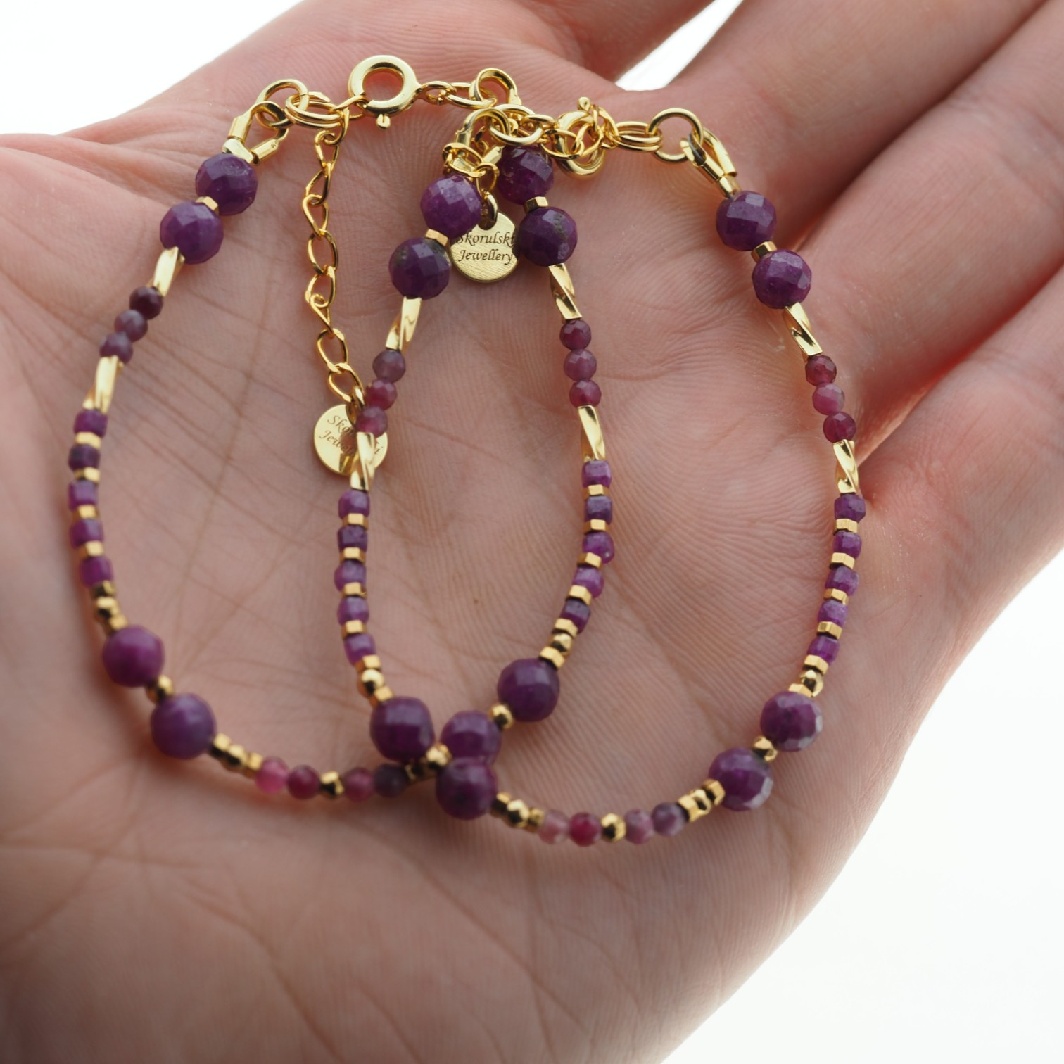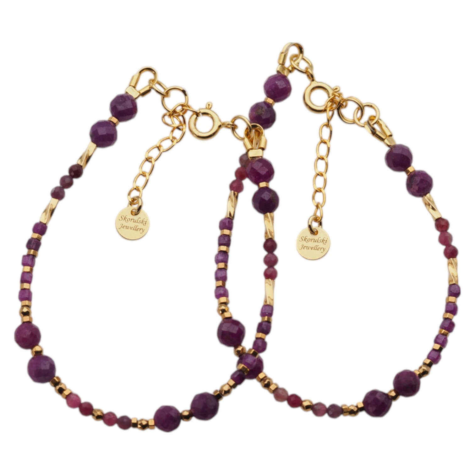 Bransoletka z Rubinem i złotym Hematytem – ręczne wykonanie, srebro pozłacane