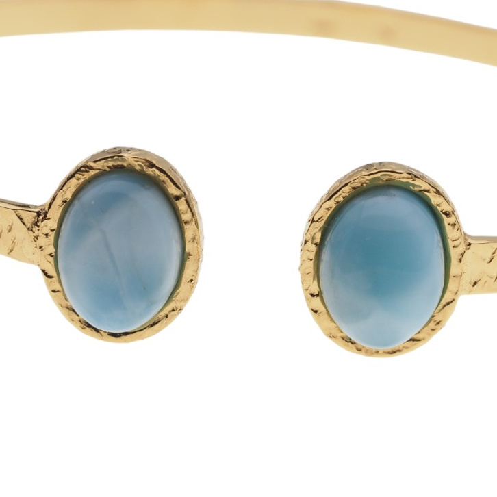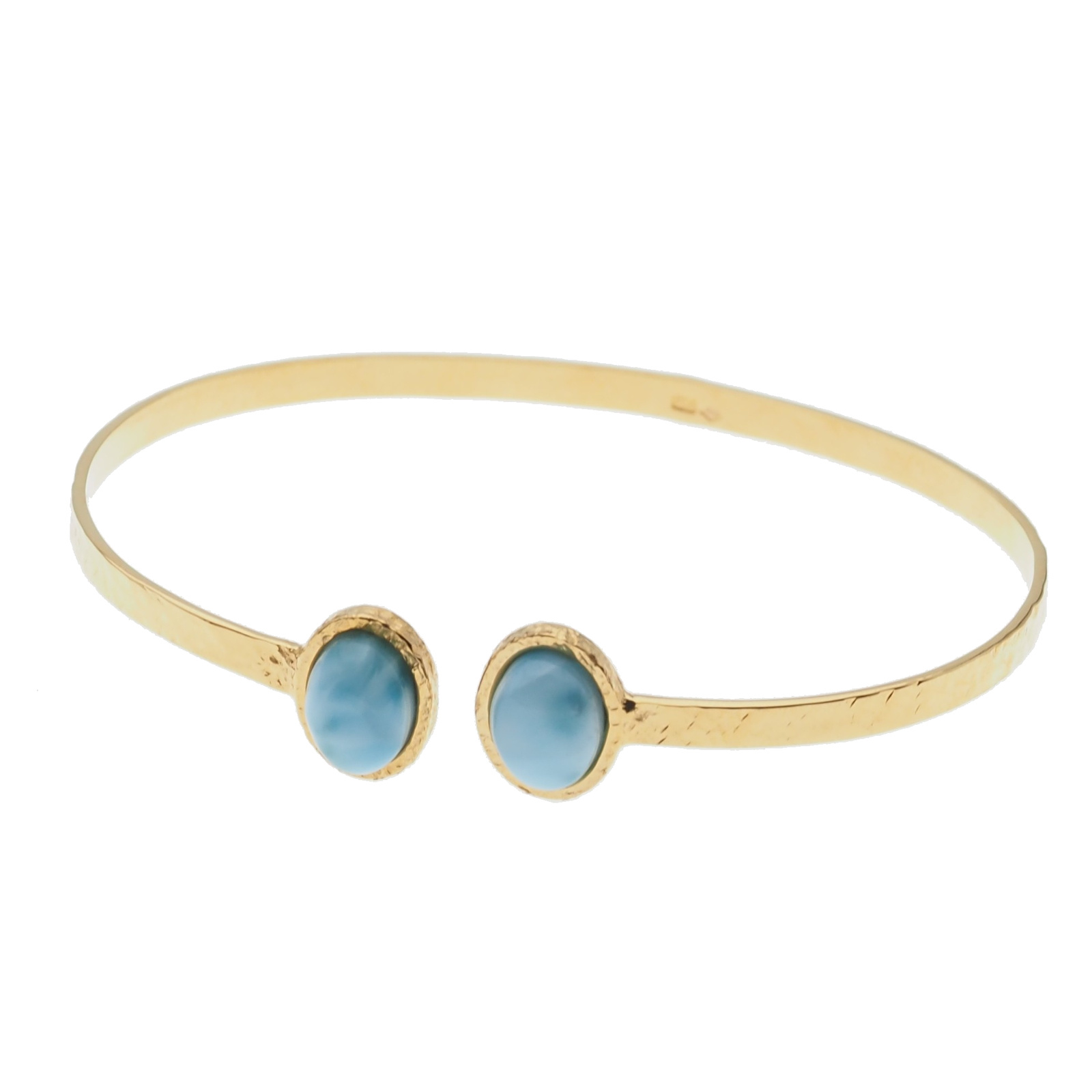 Bransoletka sztywna z owalnym Larimarem w młotkowanym srebrze złoconym