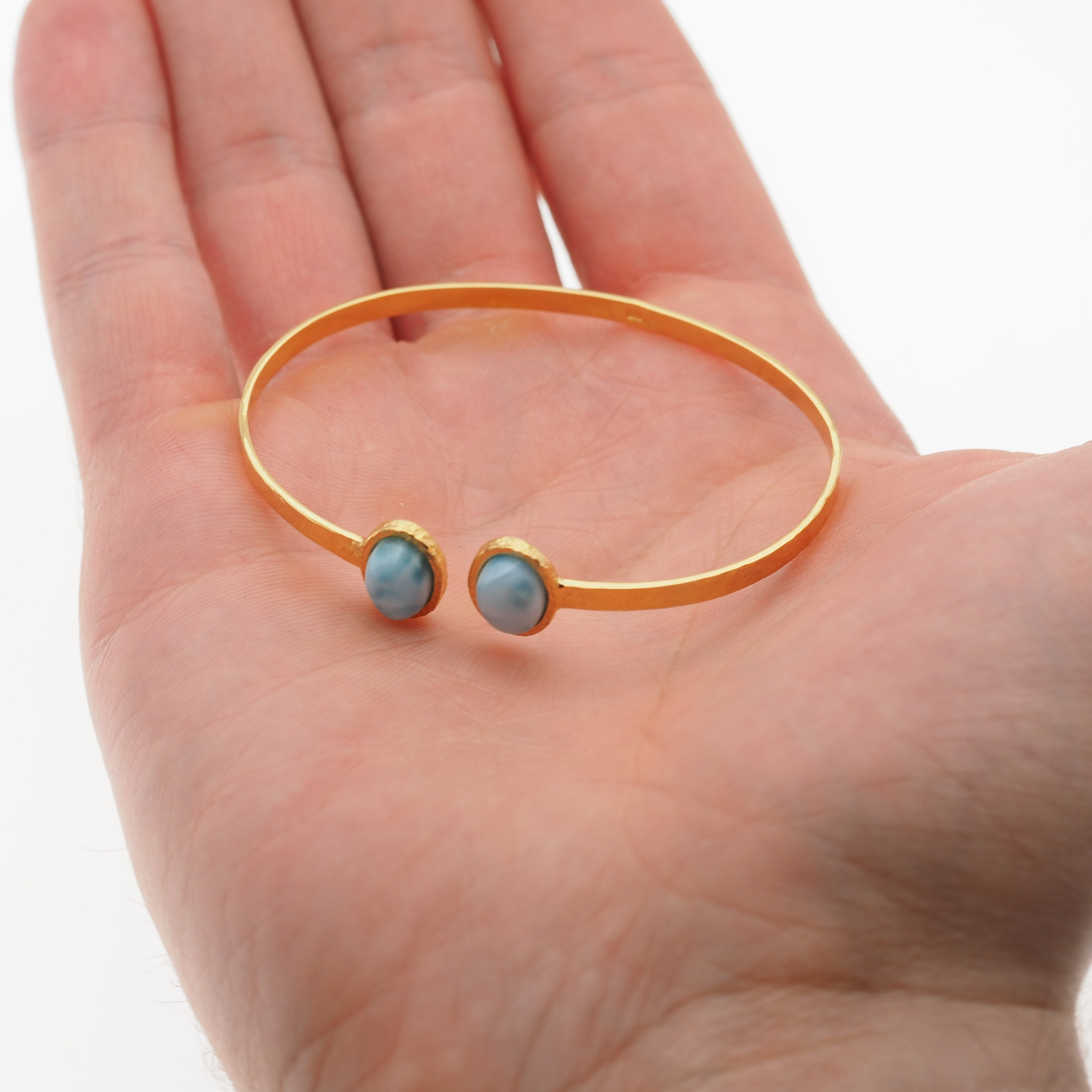 Złocona bransoletka z larimarem – srebro próby 925, ręcznie młotkowana