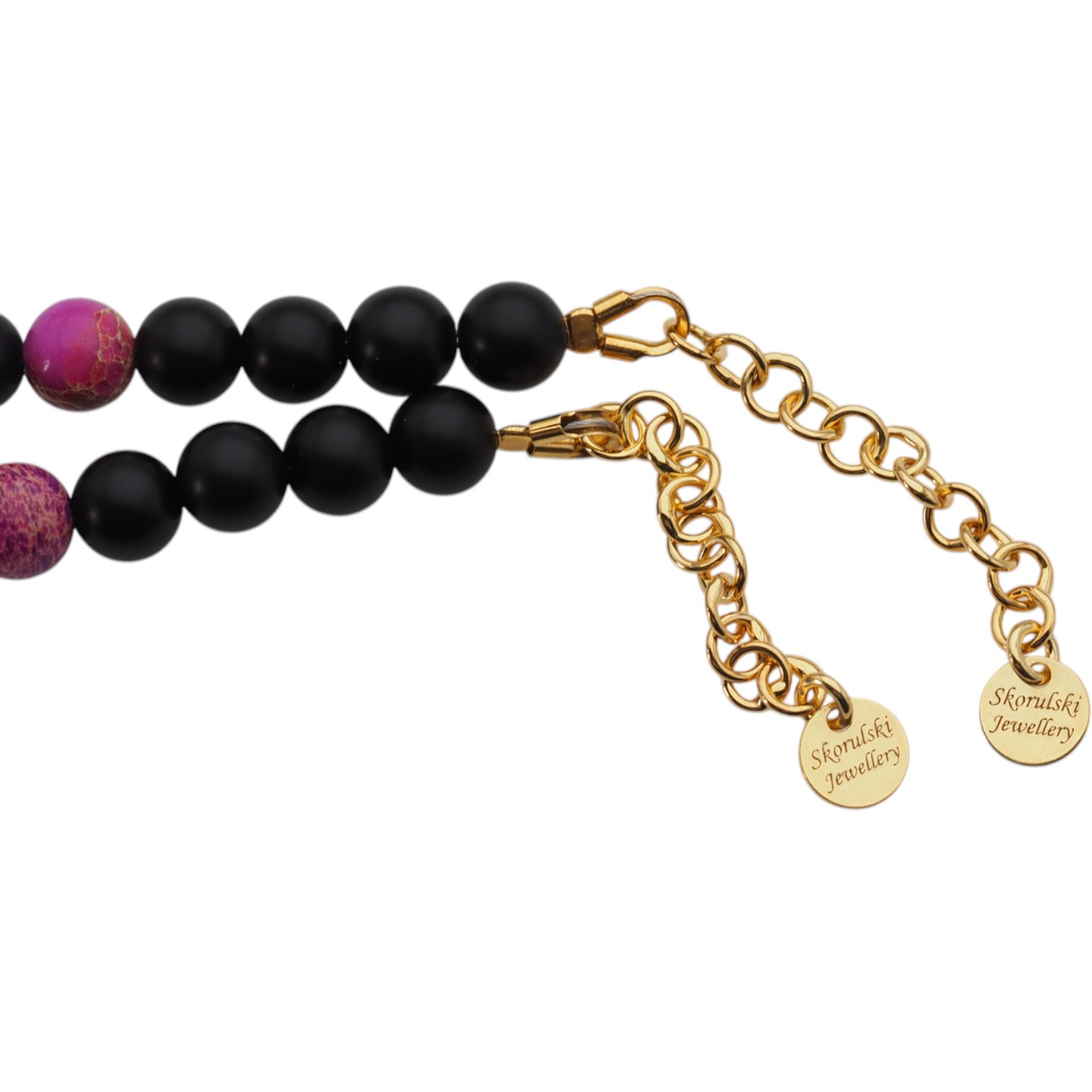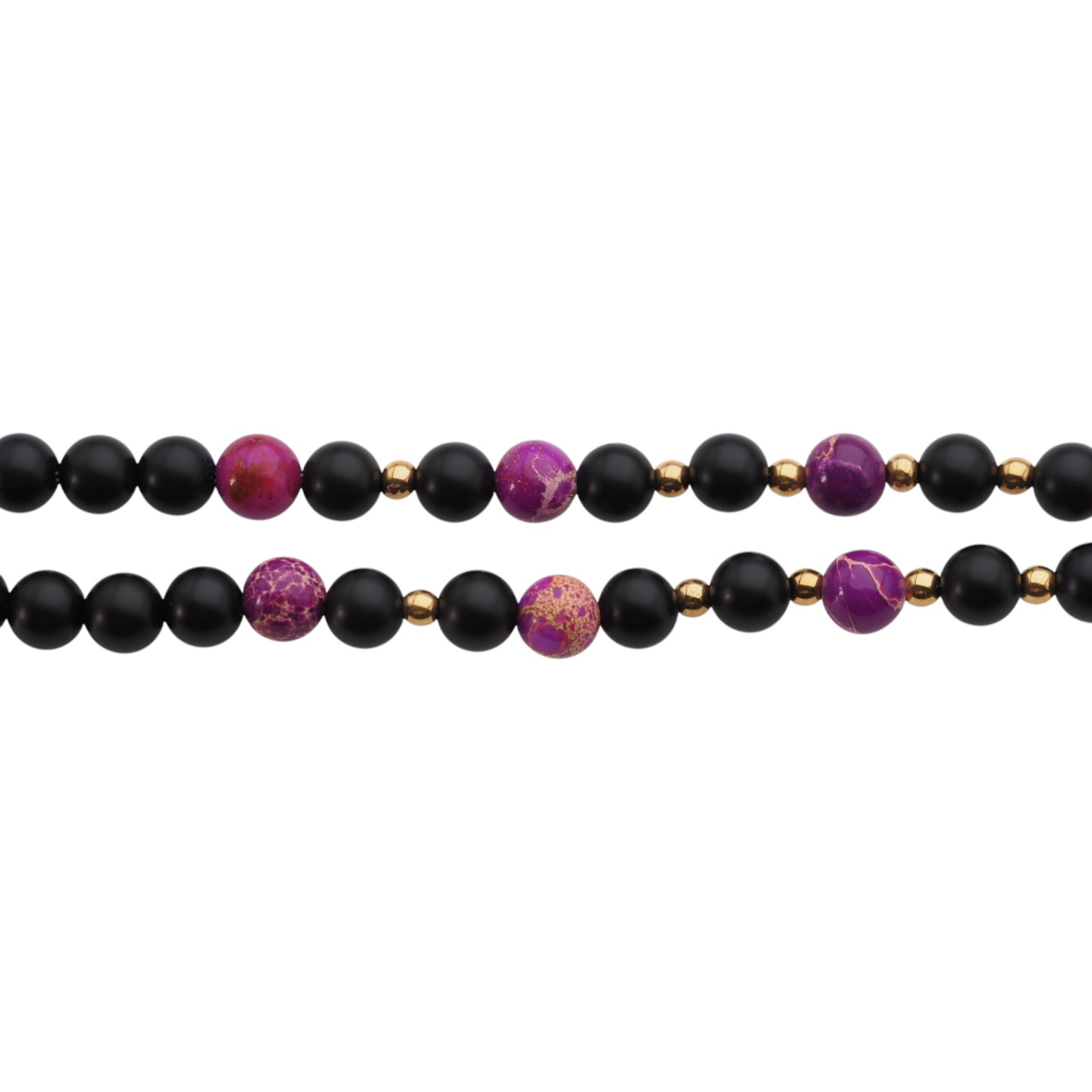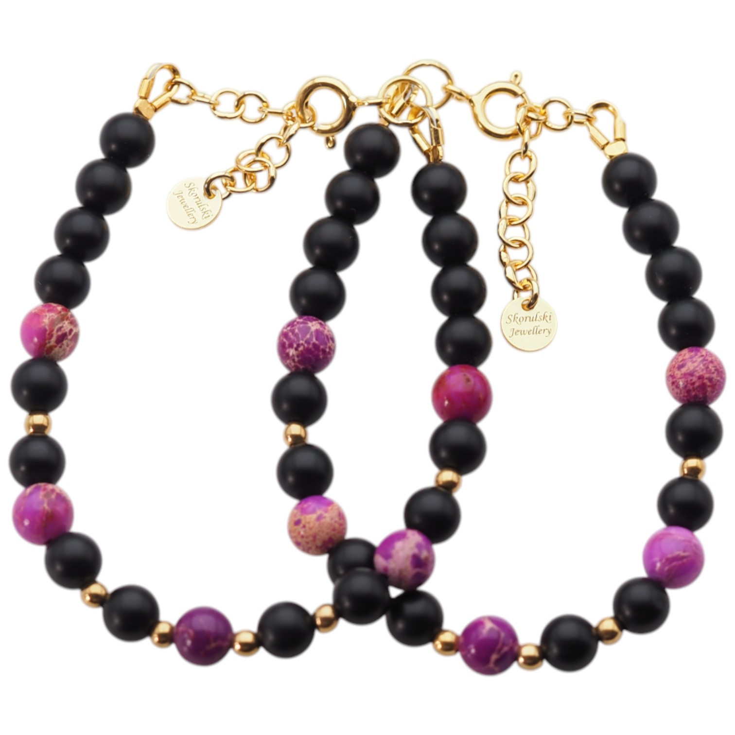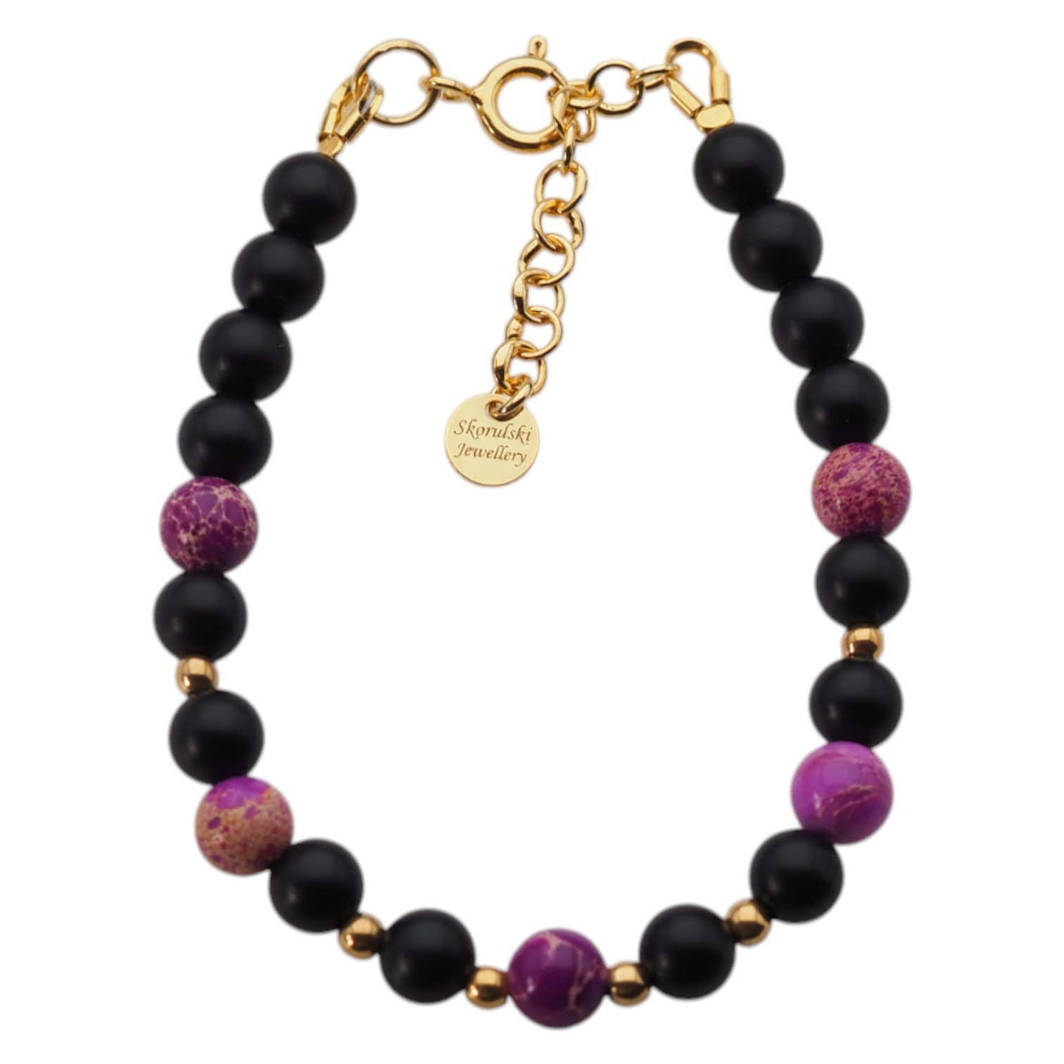 Bransoletka z fioletowym Jaspisem cesarskim i Onyksem – srebro pozłacane 24k