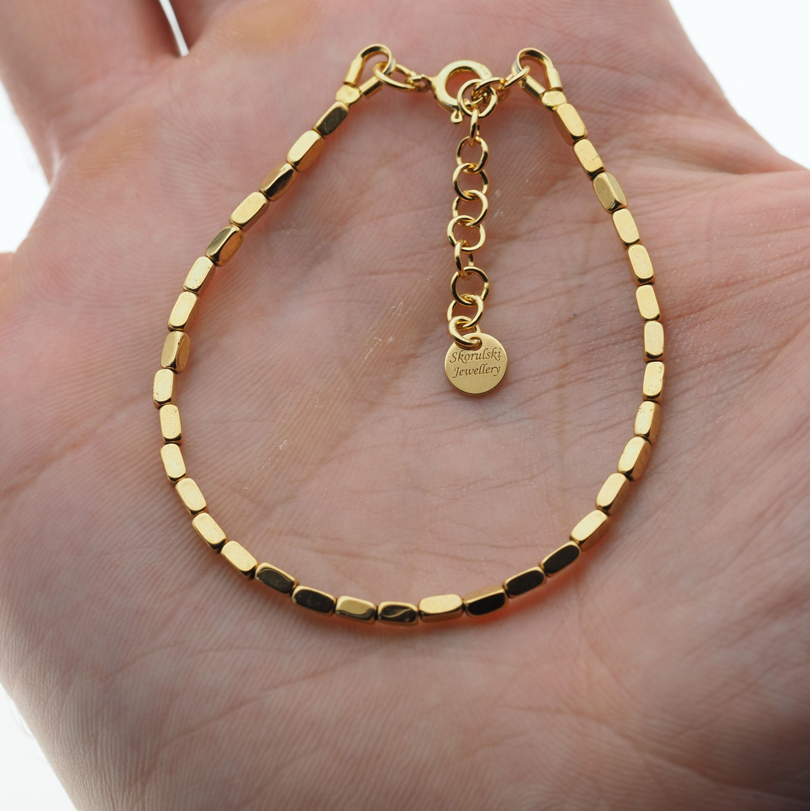 Bransoletka - złoty Hematyt prostopadłościany i srebro złocone