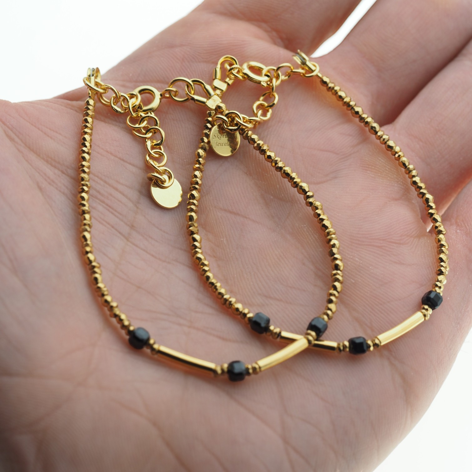 Bransoletka -złoty Hematyt, Spinel i srebro złocone