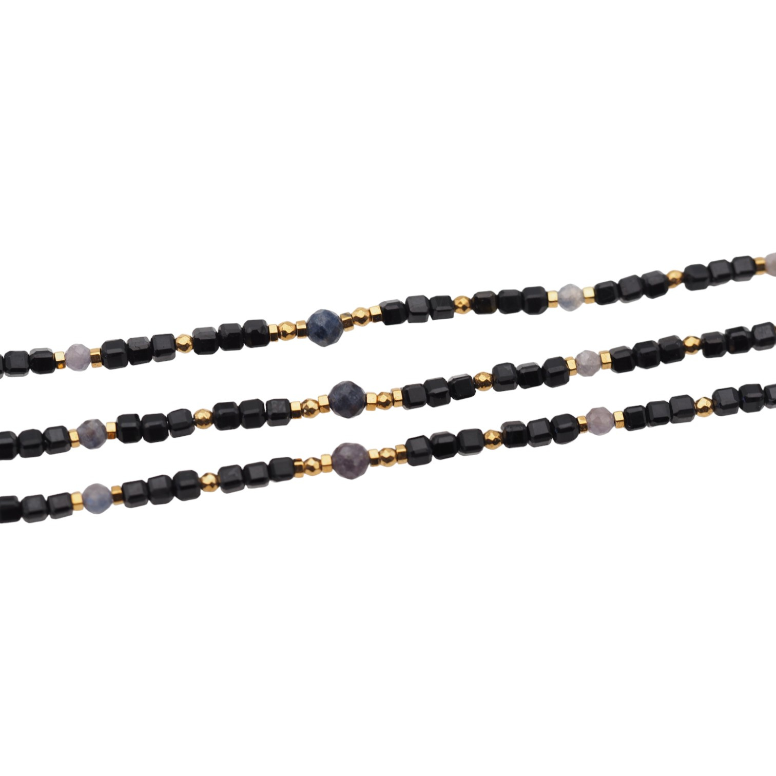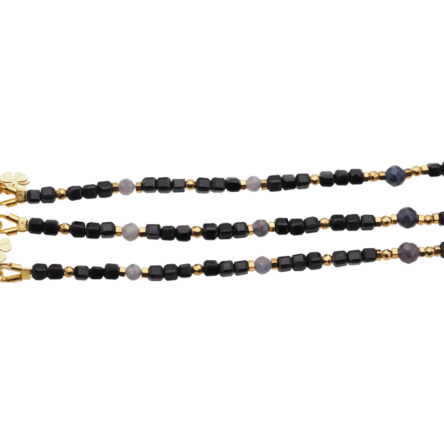 Bransoletka z różnymi kamieniami (mix) została zrobiona ręcznie na lince stalowej.