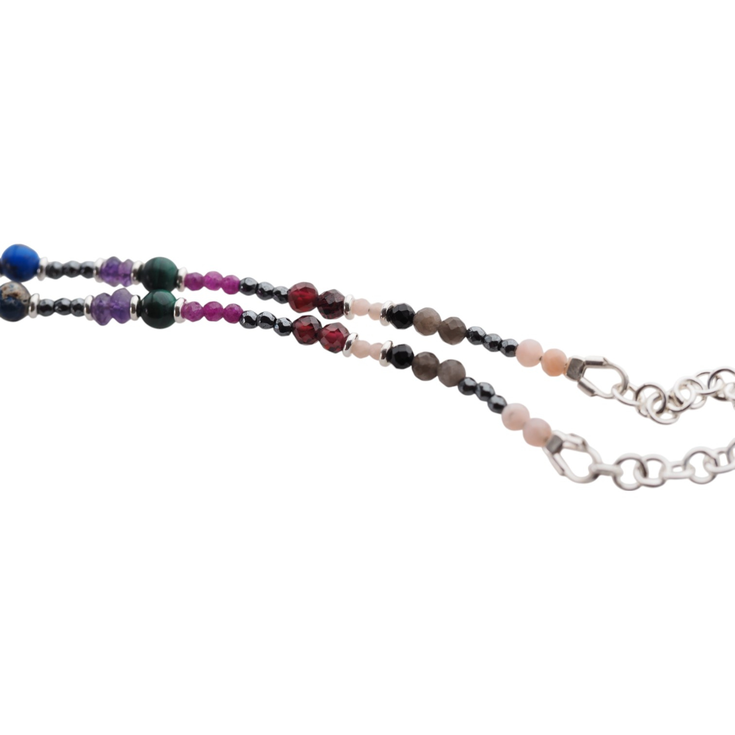 Wyrób składa się z kamieni: Ametyst, Granat, Hematyt, Jaspis, Malachit, Opal, Rubin, Turmalin.