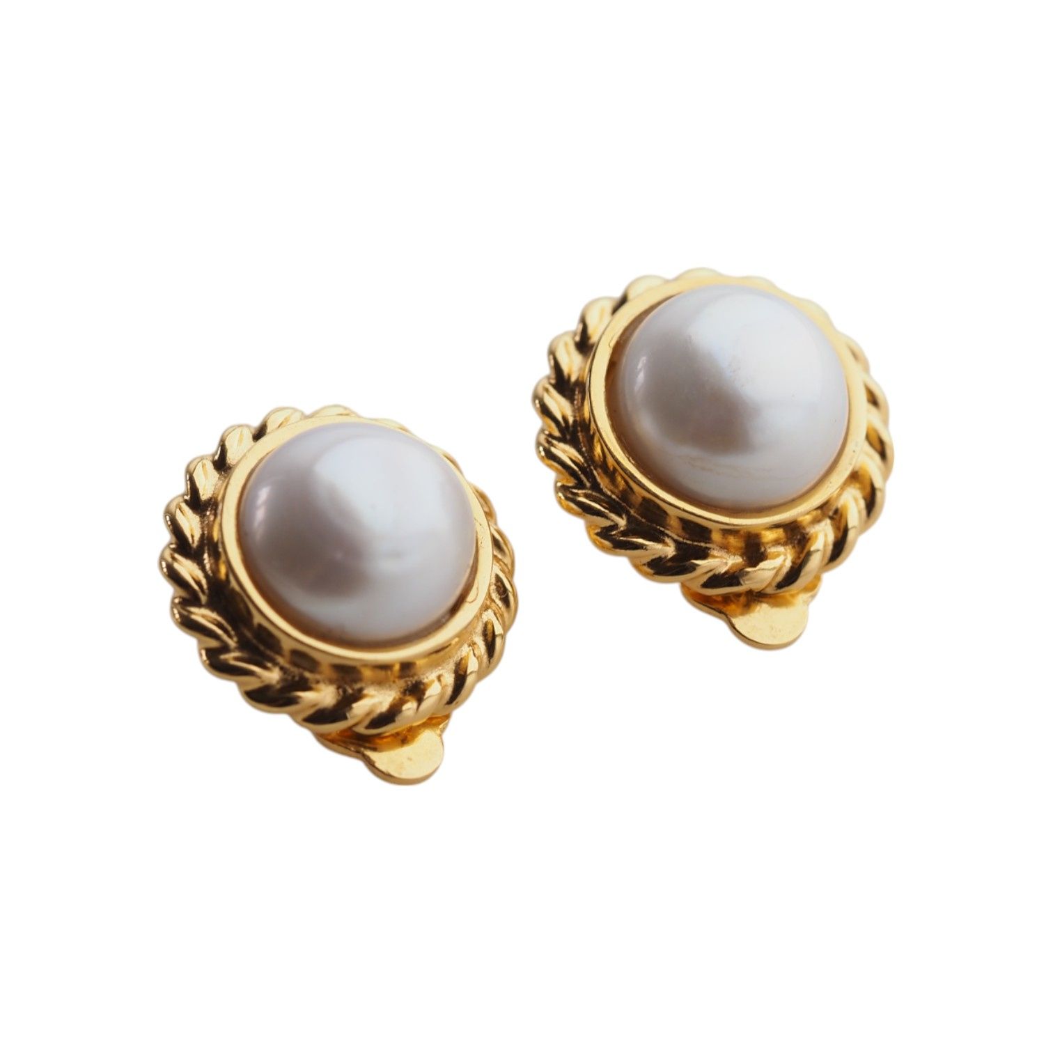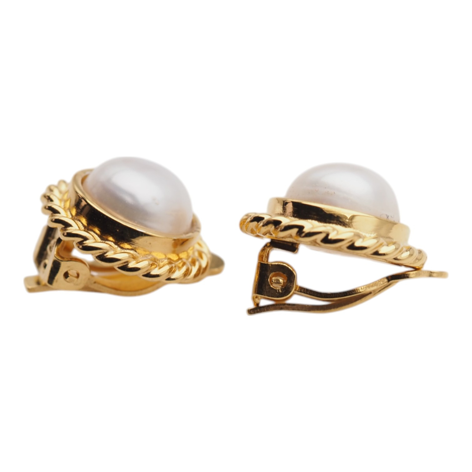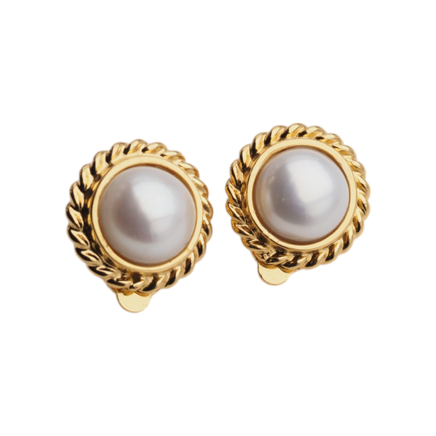 Klipsy - Perły białe koło w srebrze złoconym