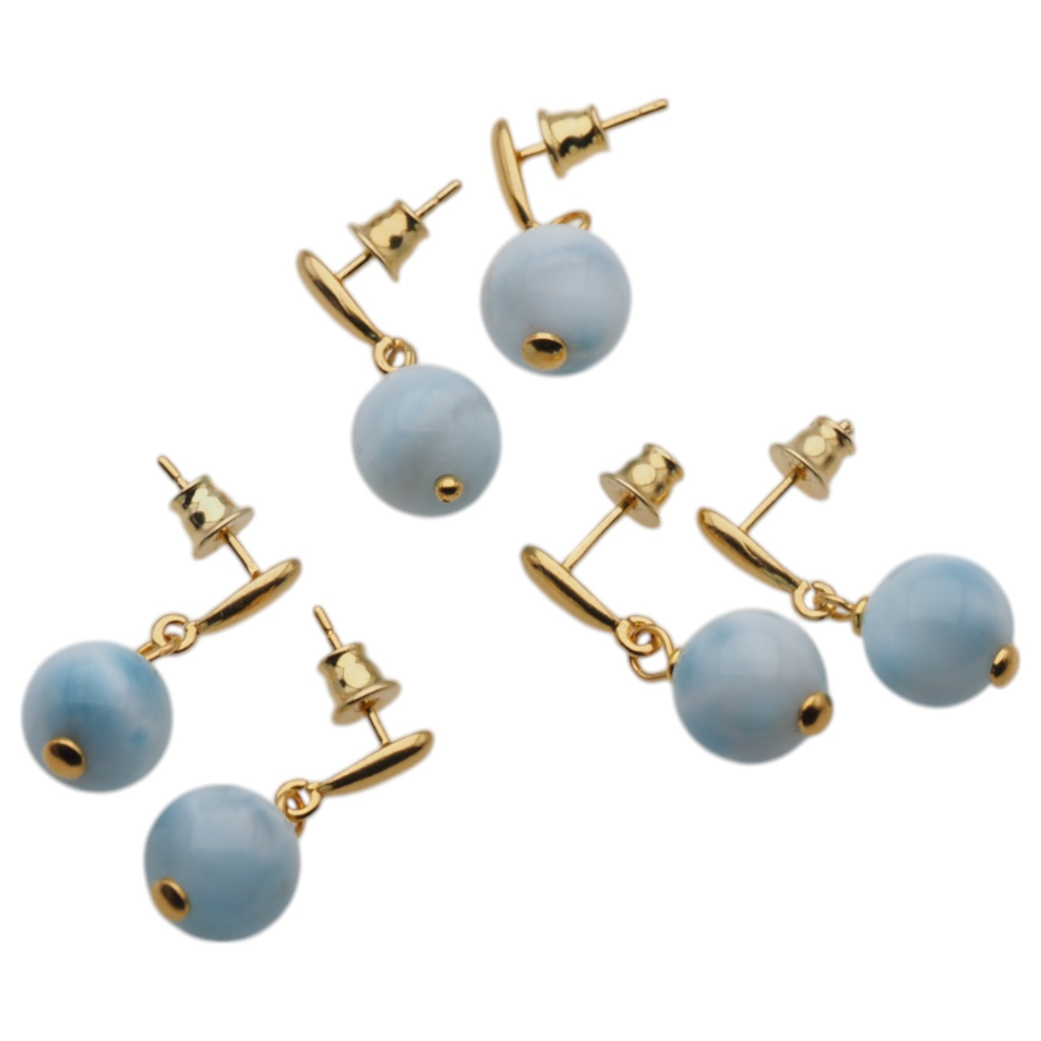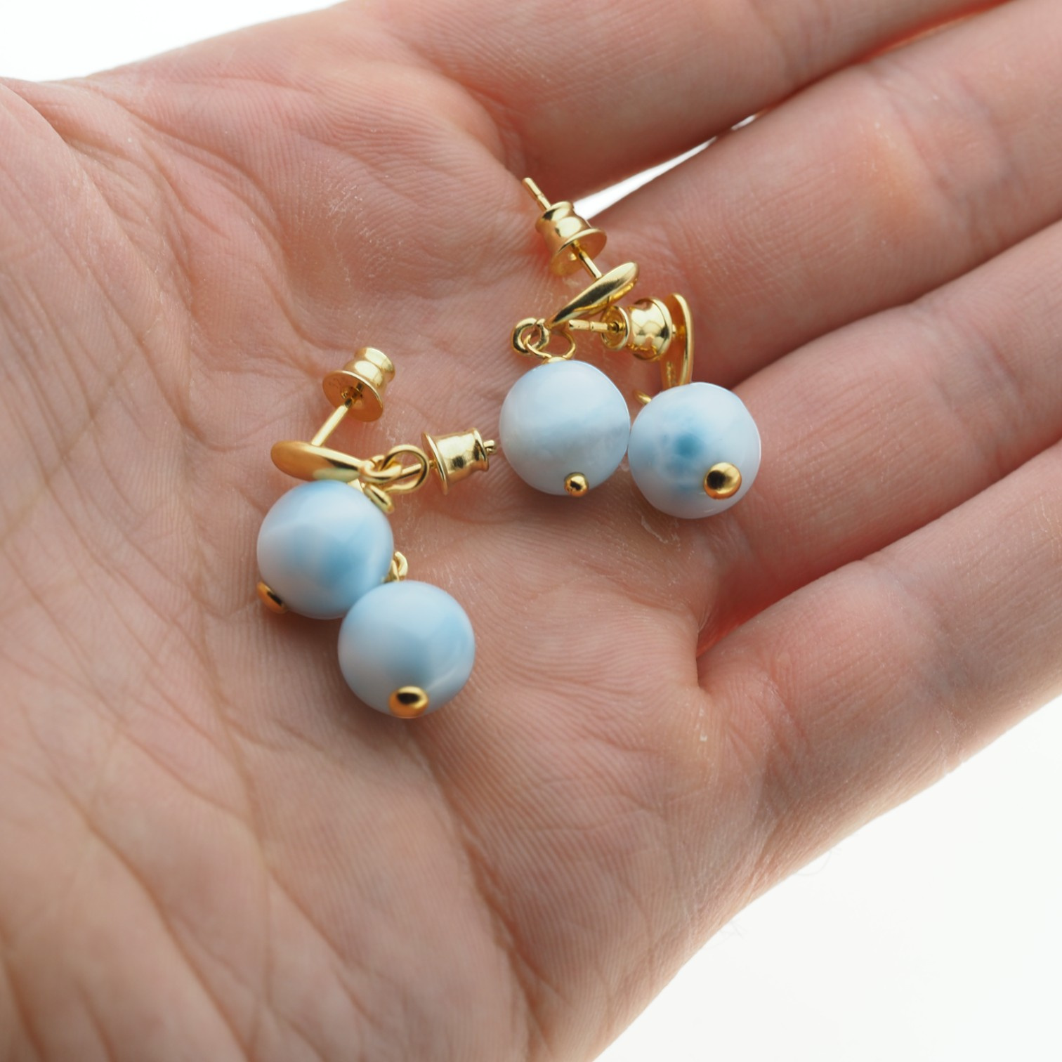 Kolczyki - Larimar kulka w srebrze zloconym