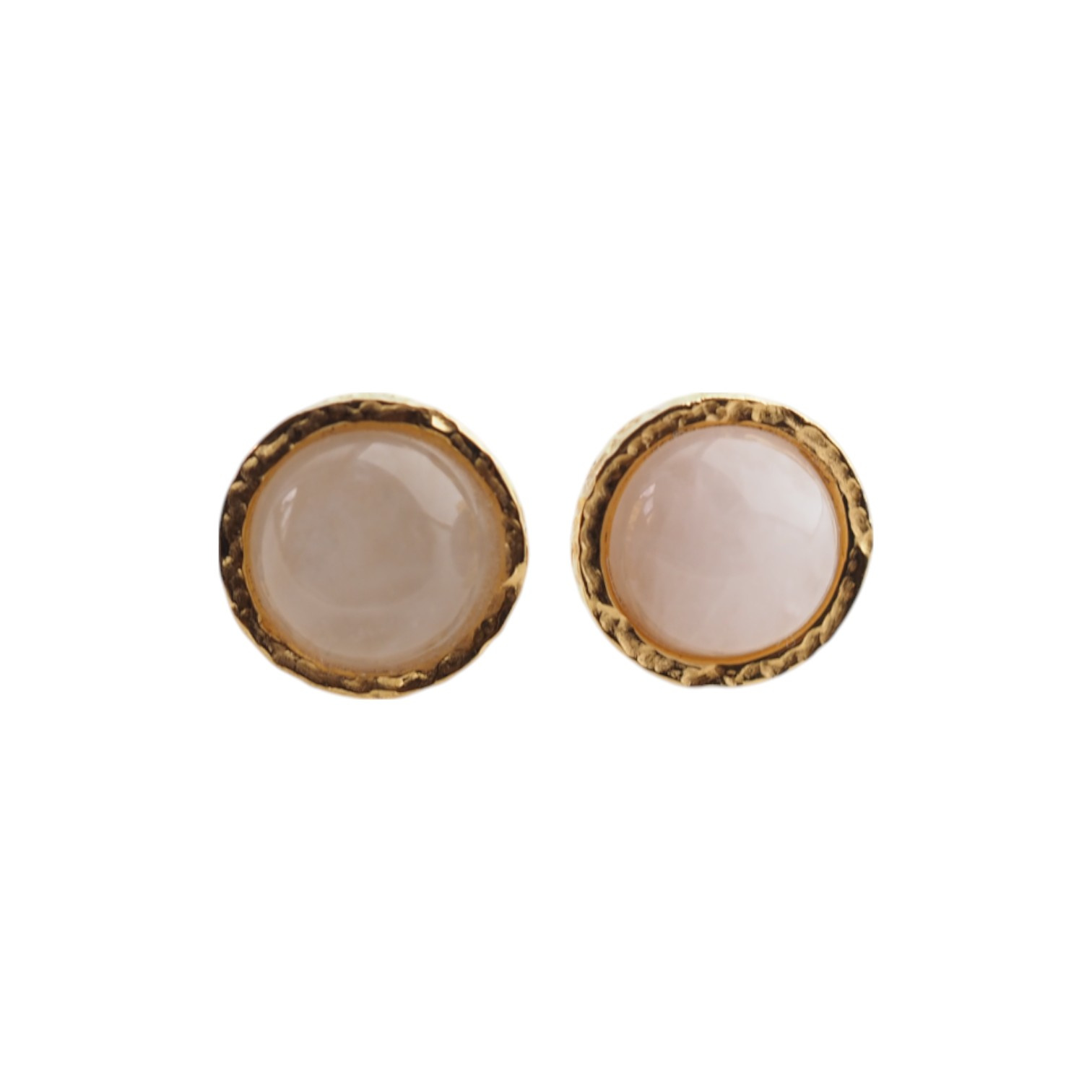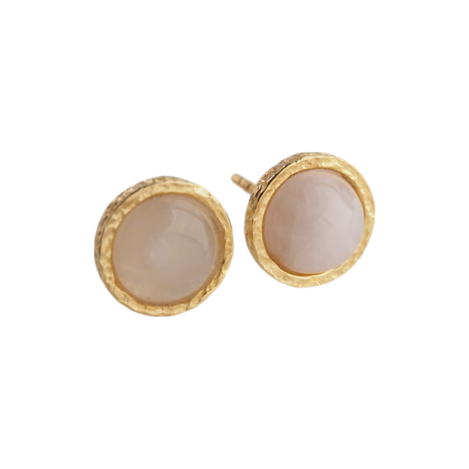 Kolczyki sztyfty - okrągły Kwarc Różowy w złoconym srebrze młotkowanym