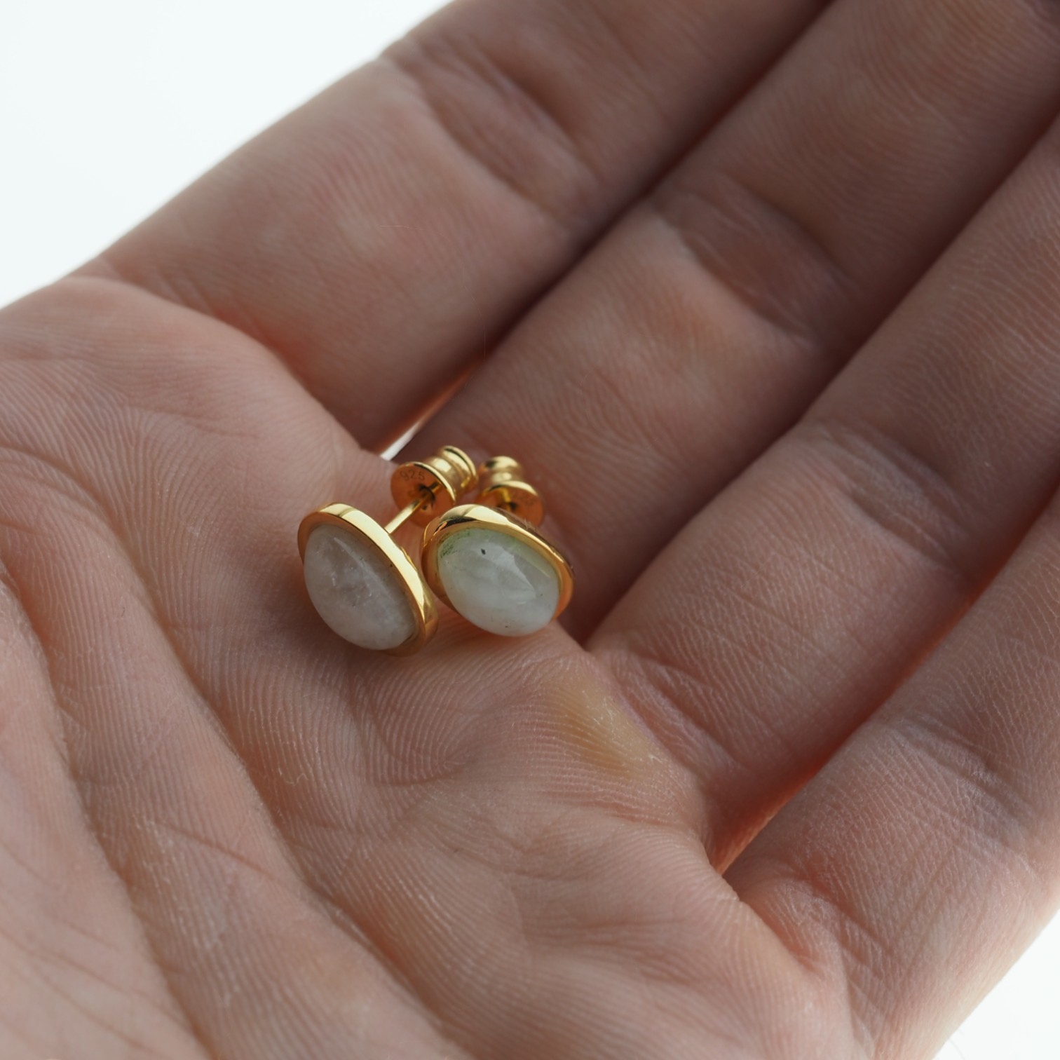 Kamień Księżycowy jest naturalnym kamieniem półszlachetnym. Kolczyki mają nieskomplikowaną, prostą oprawę, która dobrze eksponuje kamień.