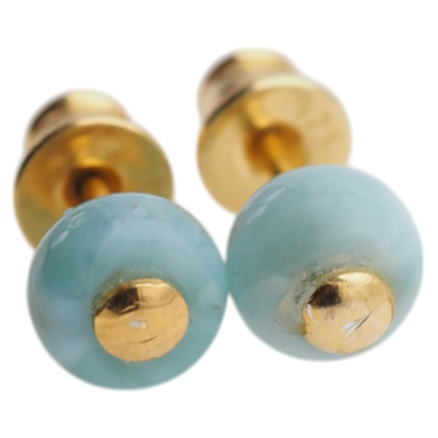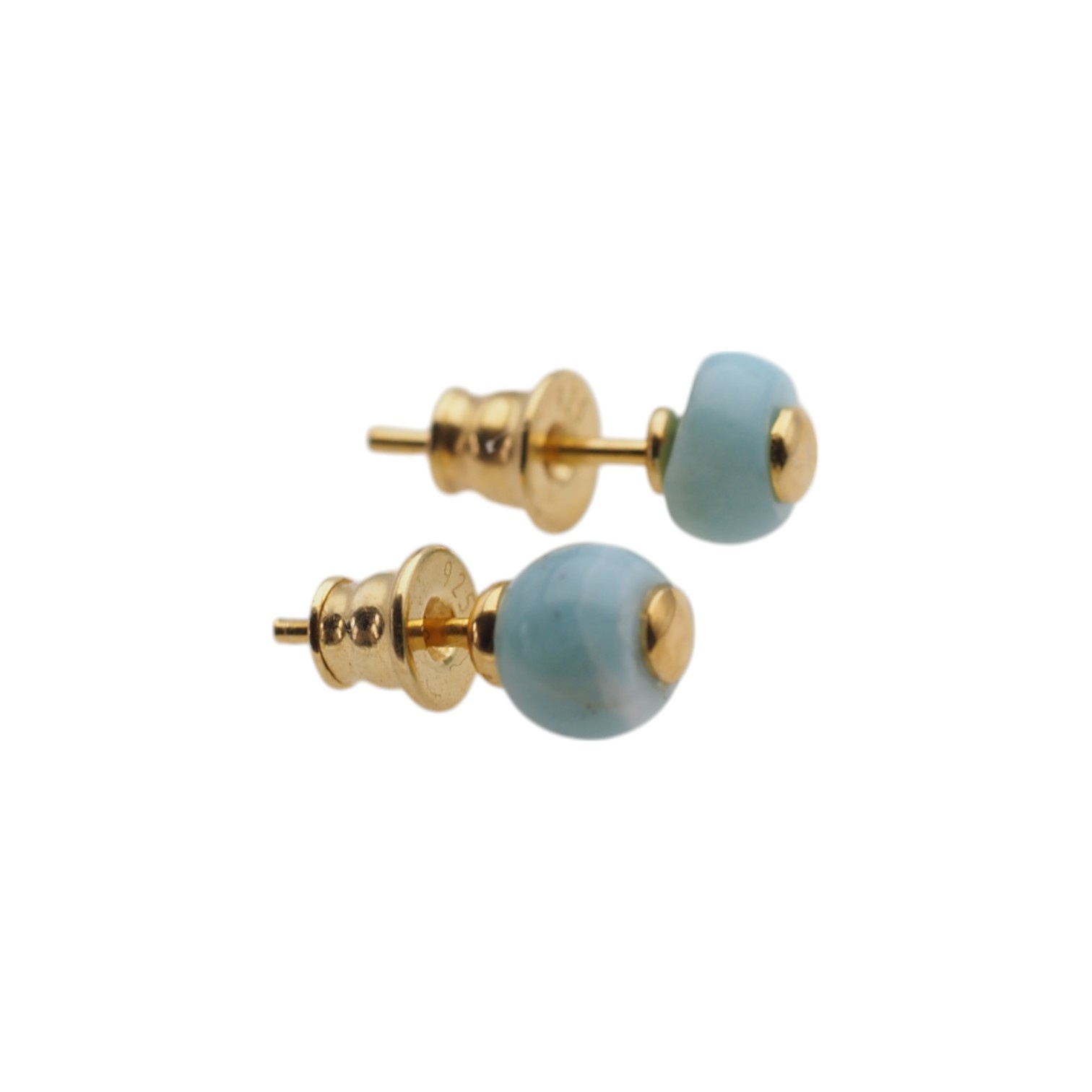 Sztyfty tych kolczyków są zamykane srebrnymi, złoconymi barankami.