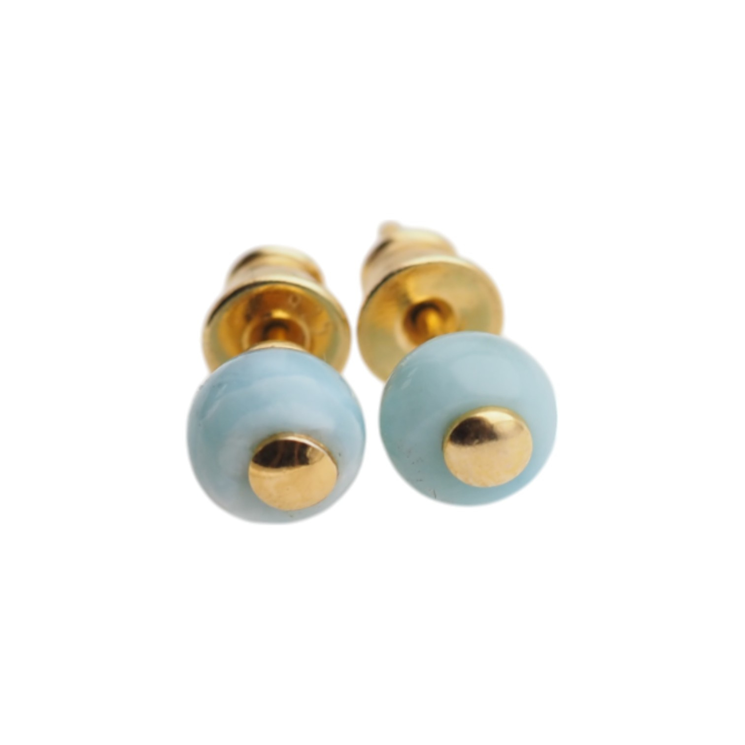 • Kolczyki sztyfty z Larimarem okrągłym w srebrze. Niebieskie, rzadko spotykane naturalne kamienie półszlachetne.