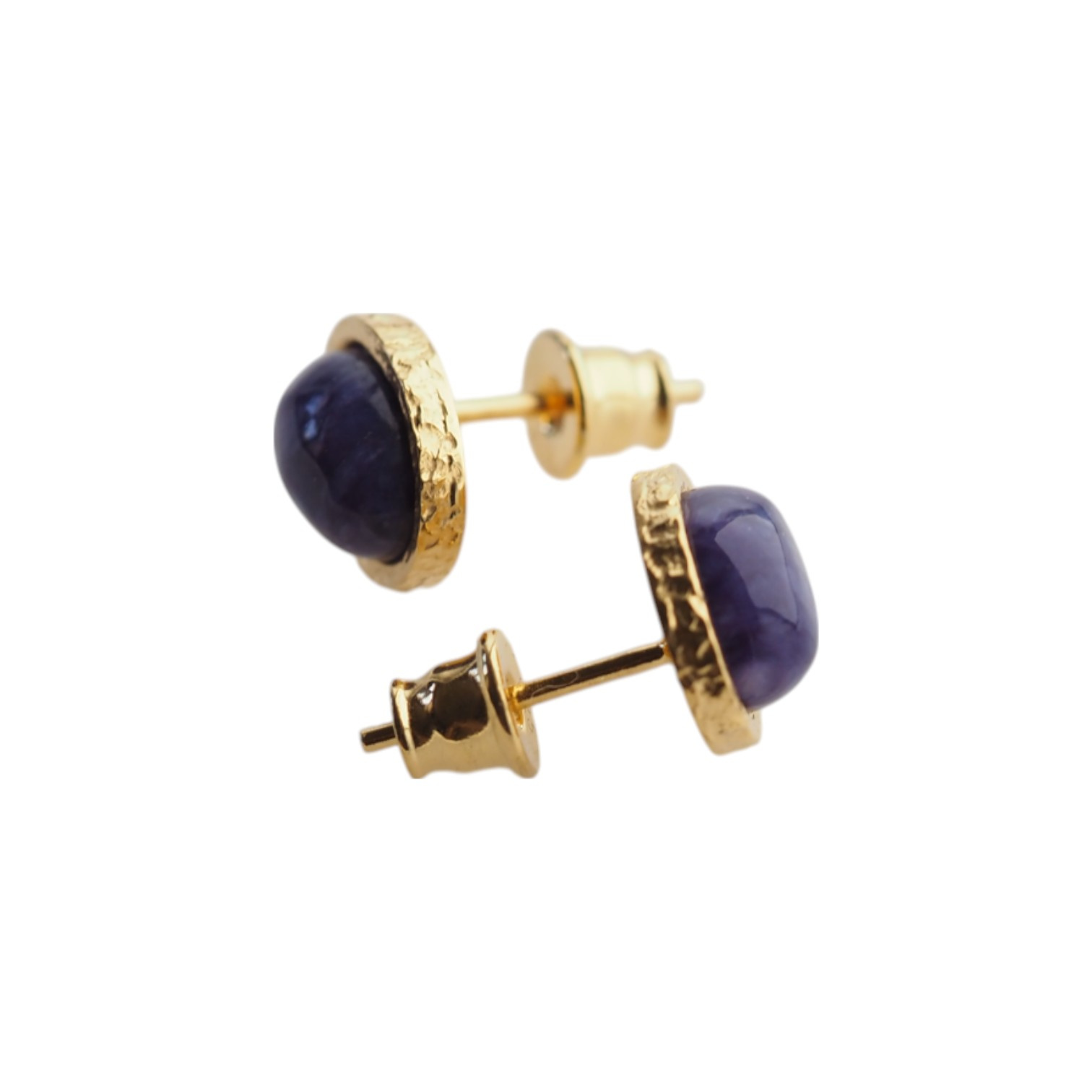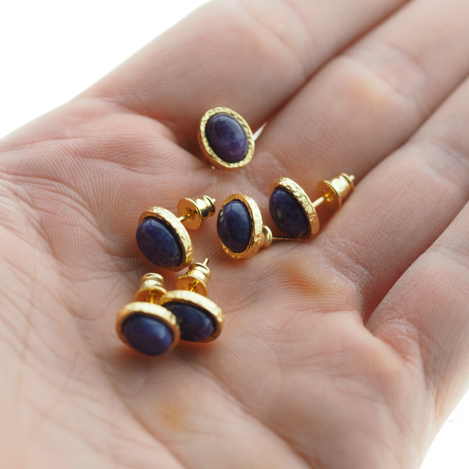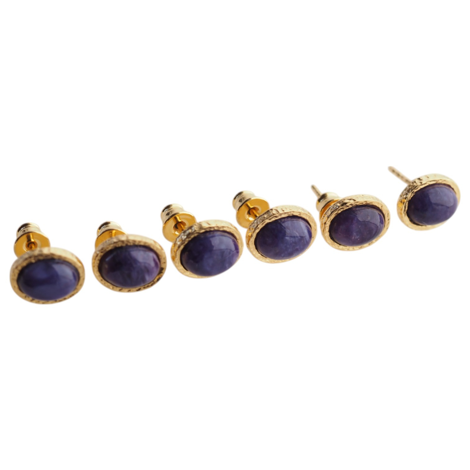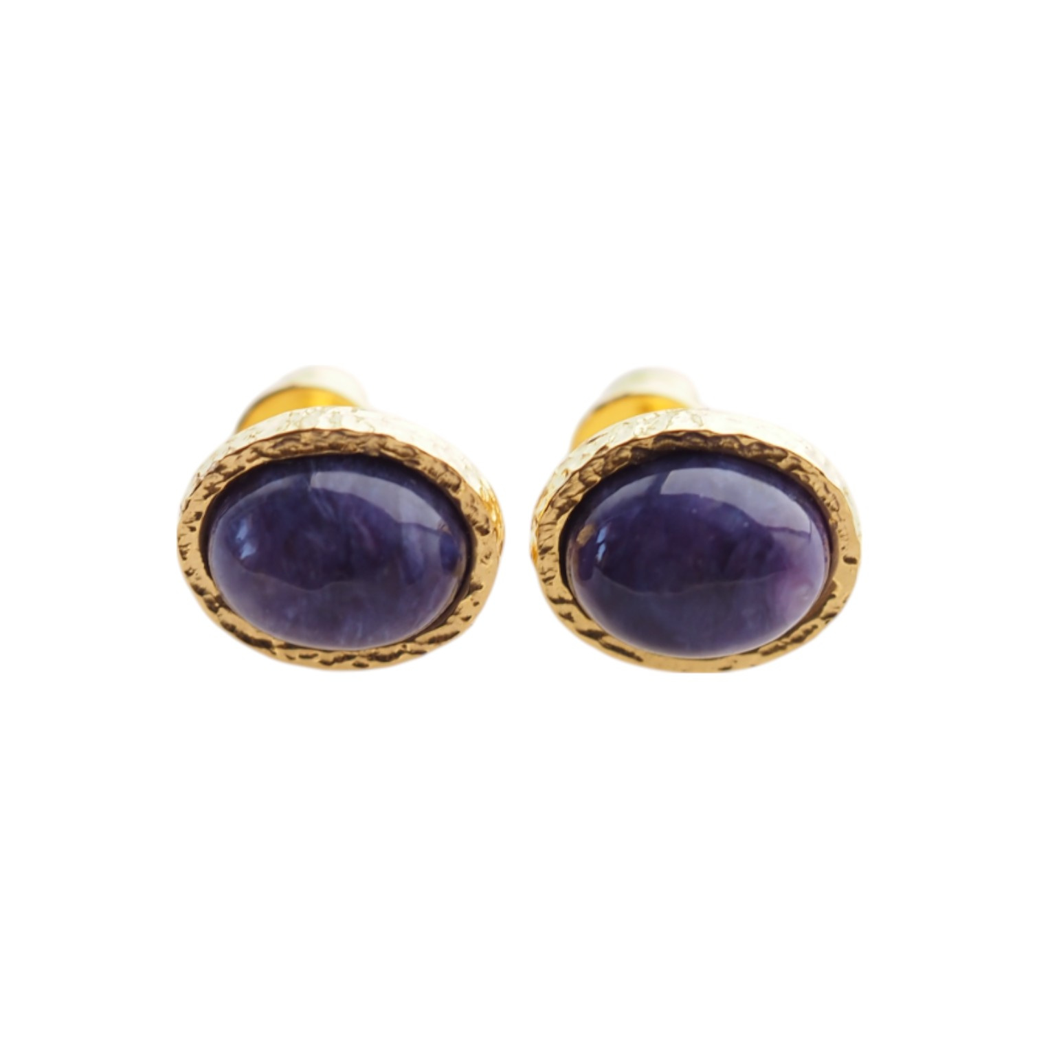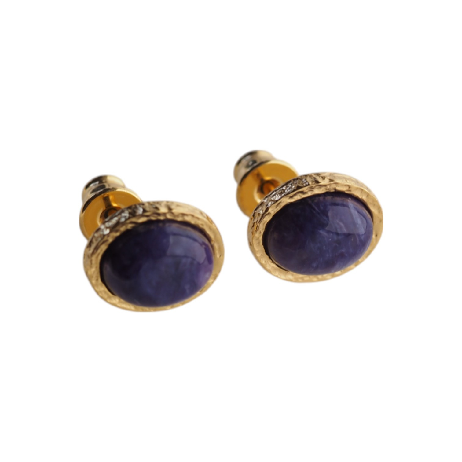 Kolczyki sztyfty z owalnym czaroitem w srebrze złoconym
