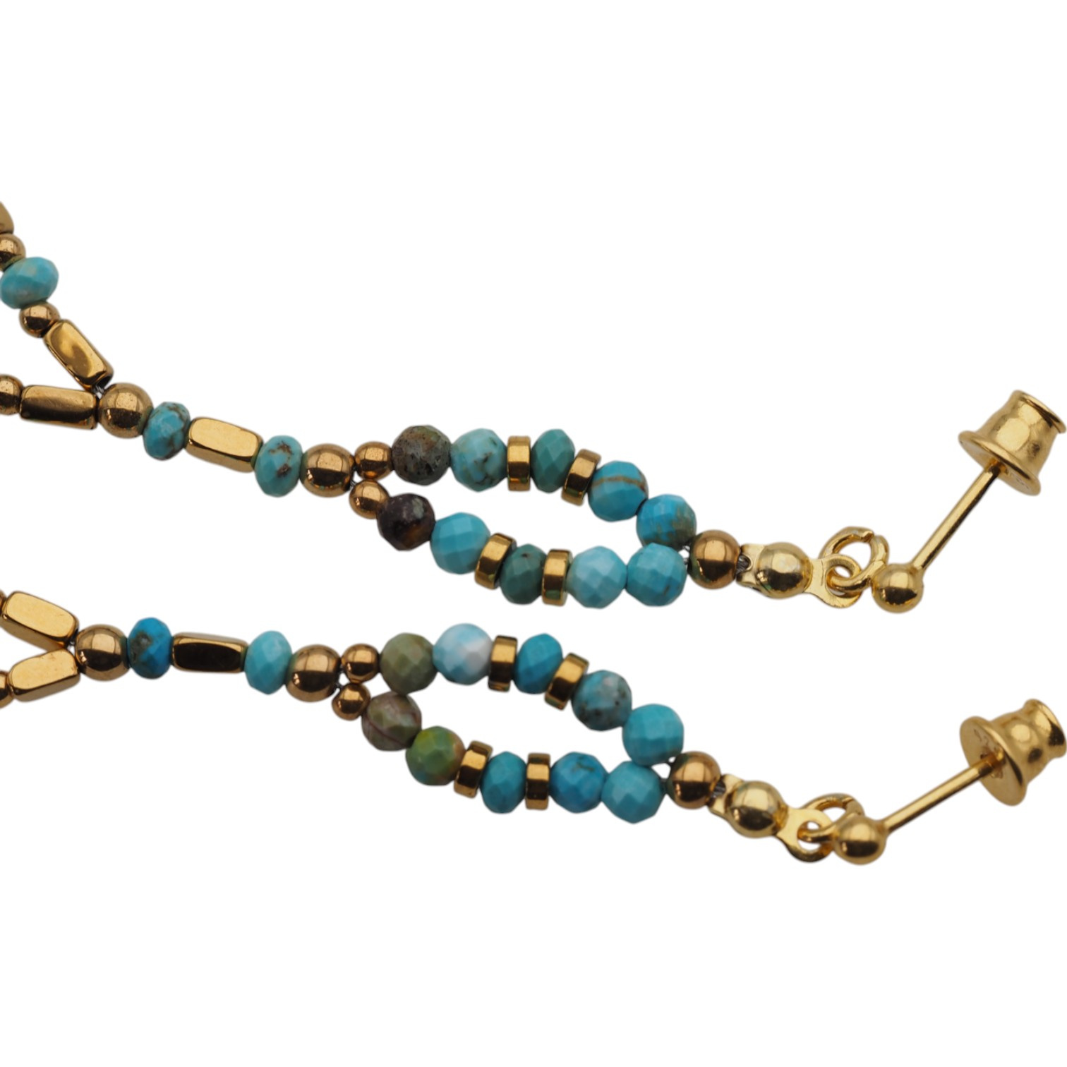 Kolczyki wiszące sztyfty - Turkus, Hematyt i srebro złocone